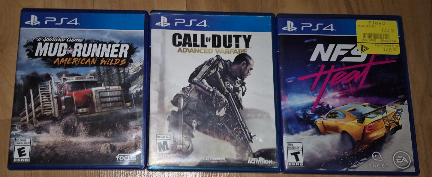 Excellent condition like new no scratches or issues!!! Call of duty advance warfare $15 Mudrunner: American wildland dlc edition included $15 Need for Speed : Heat $12 or all 3 for $40