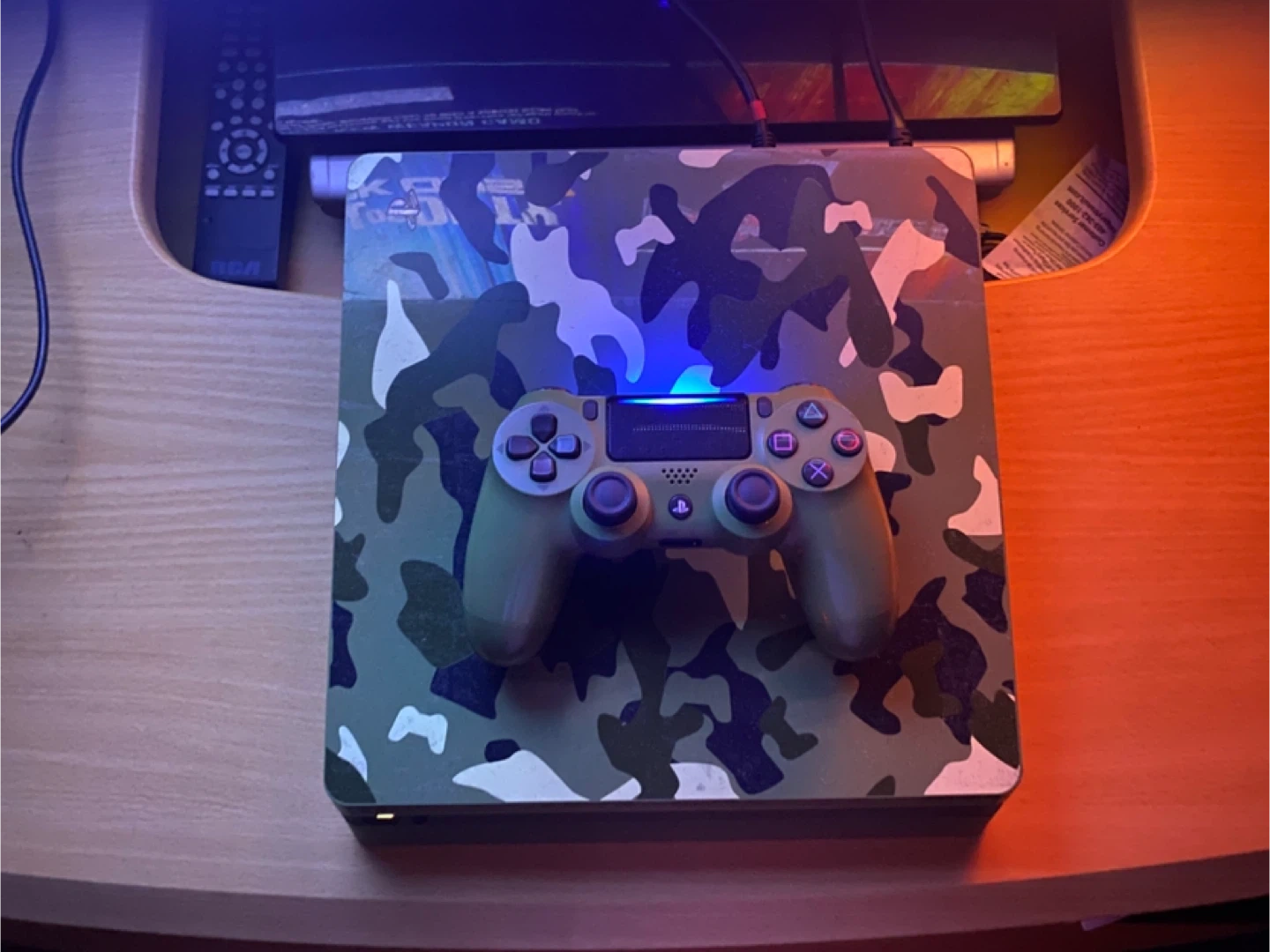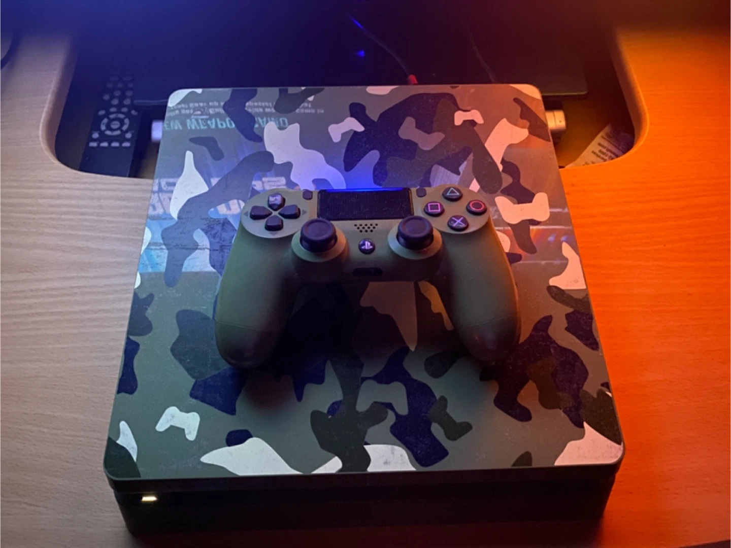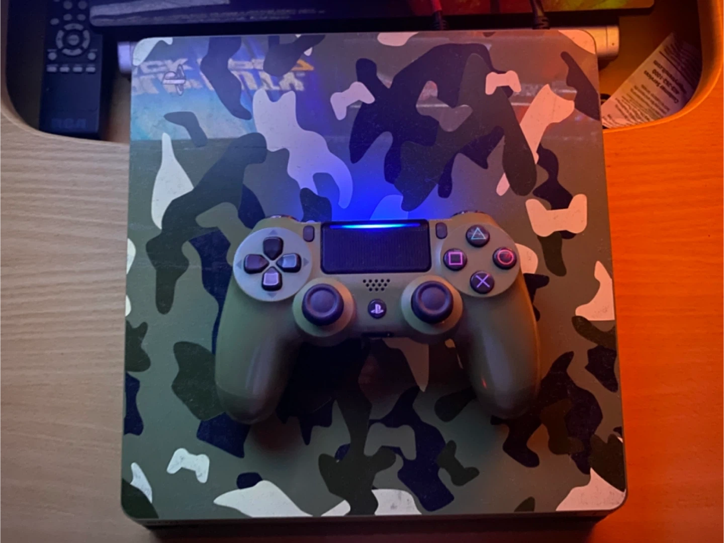 Selling a PlayStation 4 Slim with a custom camouflage skin. It comes with a matching green DualShock 4 controller. Great for gaming!