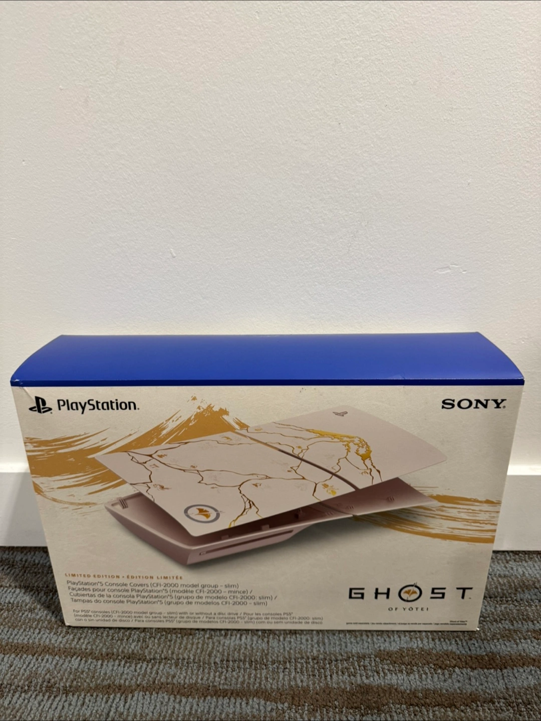 PlayStation 5 ghost of yotei gold limited edition console cover for ps5 slim Features & details Made by PlayStation: The only console covers made by PlayStation for PS5 that deliver the level of quality you deserve. Easy to Use: Simply remove your current PS5 console covers and click your new covers into place. Compatible with PS5 consoles (CFI-2000 model group - slim) with or without a disc drive. Pickup in Vancouver