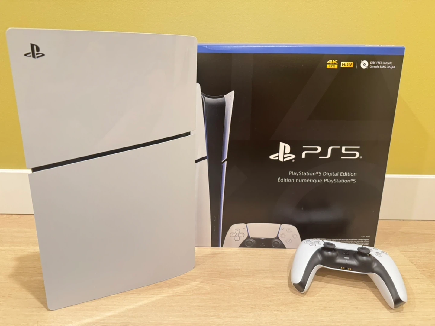Ps5 slim digital 1tb storage Works perfectly fine just like brand new without any scratches Comes with controller, box, and everything original Bought it less than a year ago so it’s perfect for those who want a brand new console with less price Open to offers Cash only