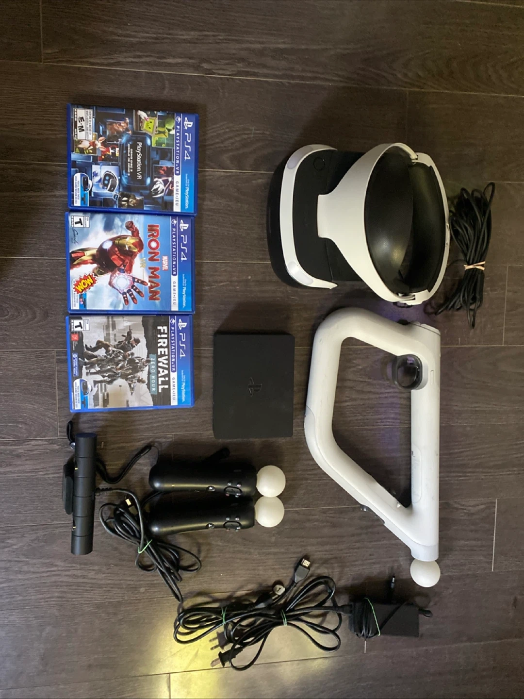 Selling a complete PlayStation VR bundle! Includes the headset, processor unit (model CUH-ZVR2), PlayStation Camera, and two Move controllers. Also comes with the Iron Man, Firewall, and VR Worlds games. All components are in great shape and ready for a new owner to enjoy virtual reality gaming!