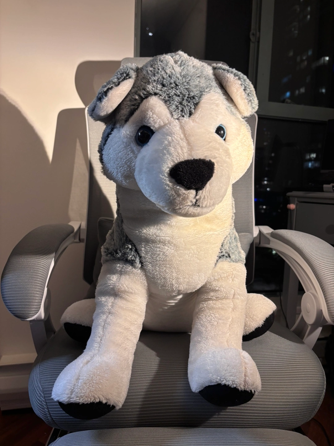 Here's a lovely husky plushie. Features a black nose and blue eyes. The plush has a grey and white colour scheme. A great companion to snuggle with for a cozy evening. Price is negotiable :)