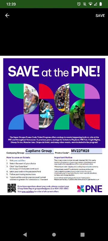 Get savings on events at the PNE and throughout Vancouver with this promo code! The Super Groups Promo Code Ticket Program offers discounts on tickets to Playland, PNE Fair, Fright Nights, Disney On Ice, Monster Jam, Cirque du Soleil, and more. Use the code MV22FM28 when purchasing your tickets online. Visit pne.ca/offers for a list of current offers. Please type the code, as copying and pasting may not work correctly. Online tickets are not available for purchase at the gate, so be sure to purchase them before the event! Check with your Group Sales Rep for event-specific deadlines, as these can change anytime