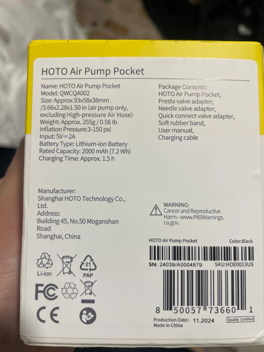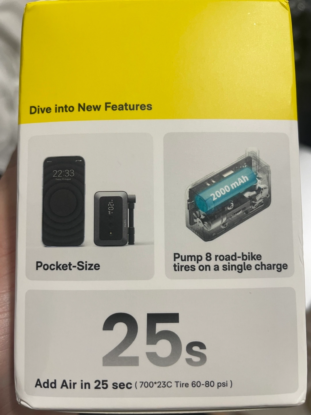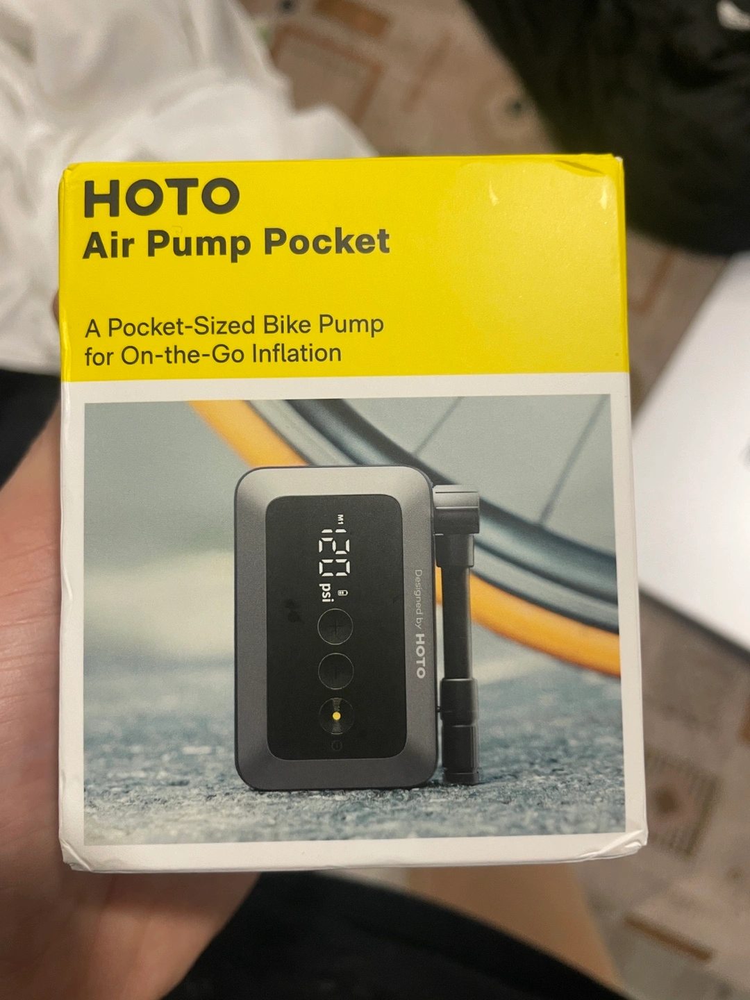 a portable, pocket-sized electric air pump designed for inflating bicycle tires and other inflatables. Never used brand new.