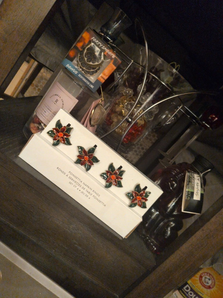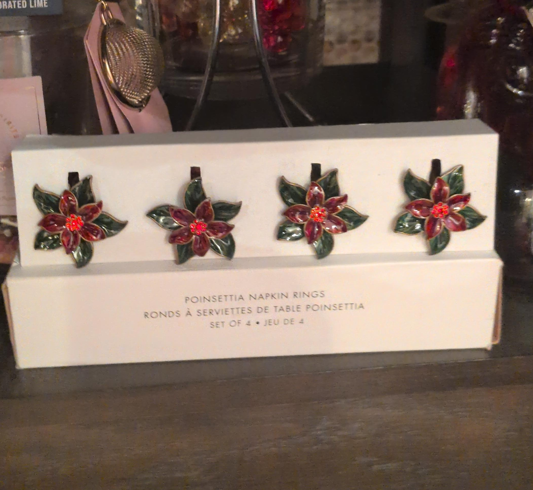 Selling a set of 4 Poinsettia napkin rings! They're perfect for adding a festive touch to your table setting this holiday season. I have three box's of four napkin holders. $25.00 for all three box's or $12.00 each box