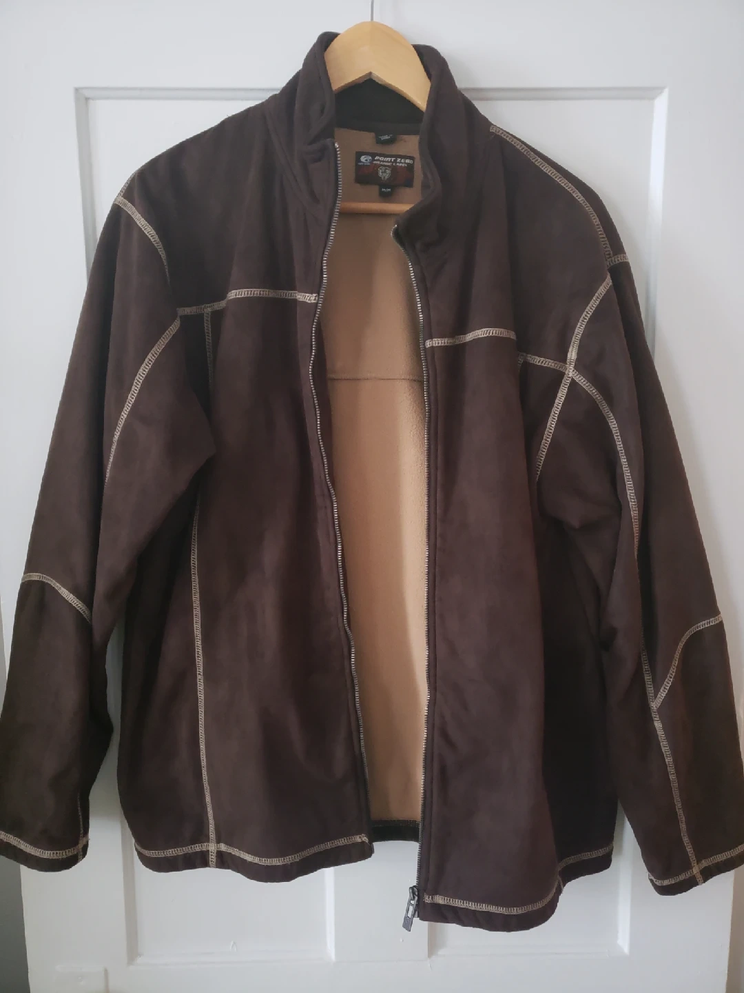 Here's a Point Zero brown faux suade jacket with a light brown fleece lining. Size medium. It's in great condition and ready to keep you warm. The jacket features a full zipper. Great for layering & adding style to your wardrobe. Pickup only. Public meet up located at Campbell Avenue and Wallace ave intersection in Toronto's west end Junction area.