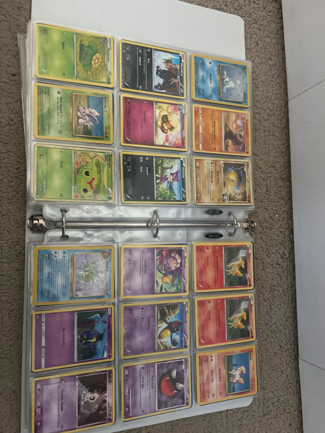 Selling a binder full of Pokémon cards! There are 700+ cards. Great for collectors or anyone looking to start their collection. The binder is in good condition and contains a variety of different cards. Take a look at the pictures!