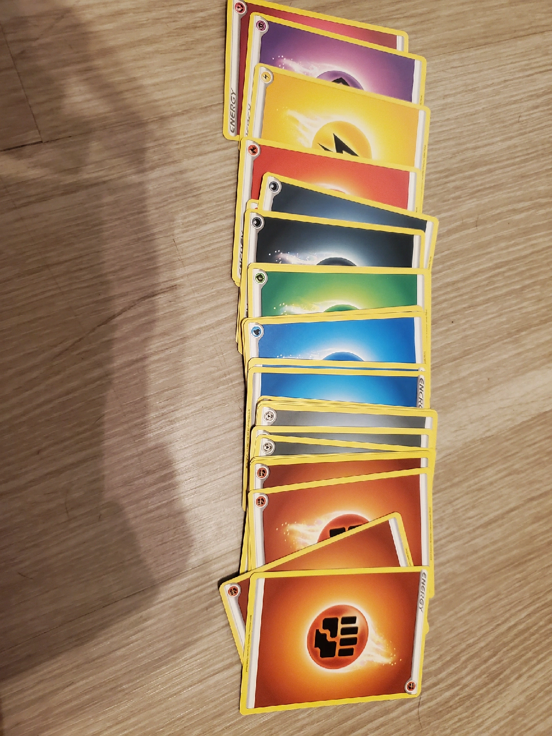 Selling a collection of Pokémon energy cards. Perfect for building your deck or adding to your collection! 5x fighting 7x medal 6x water 4x grass 3x fire 4x darkness 3x lightning 1x fairy 1x psychic
