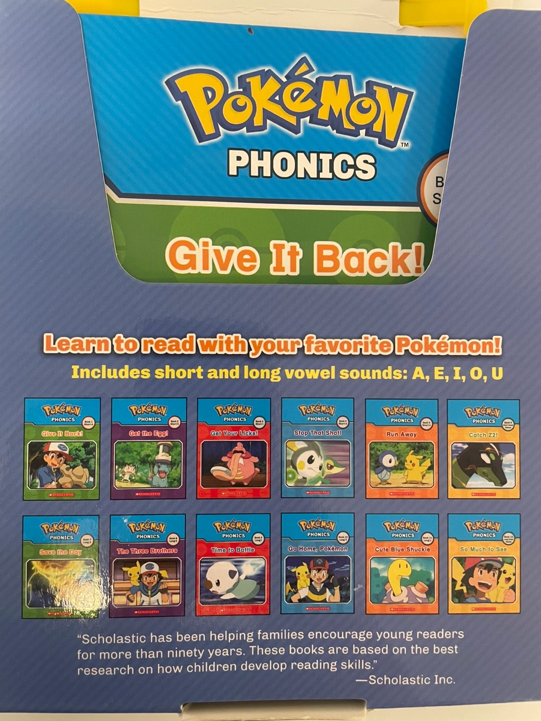 Learn to read with your favourite Pokémon! This set includes short and long vowel sounds: A, E, I, O, U. It includes 12 books. Great for young readers!