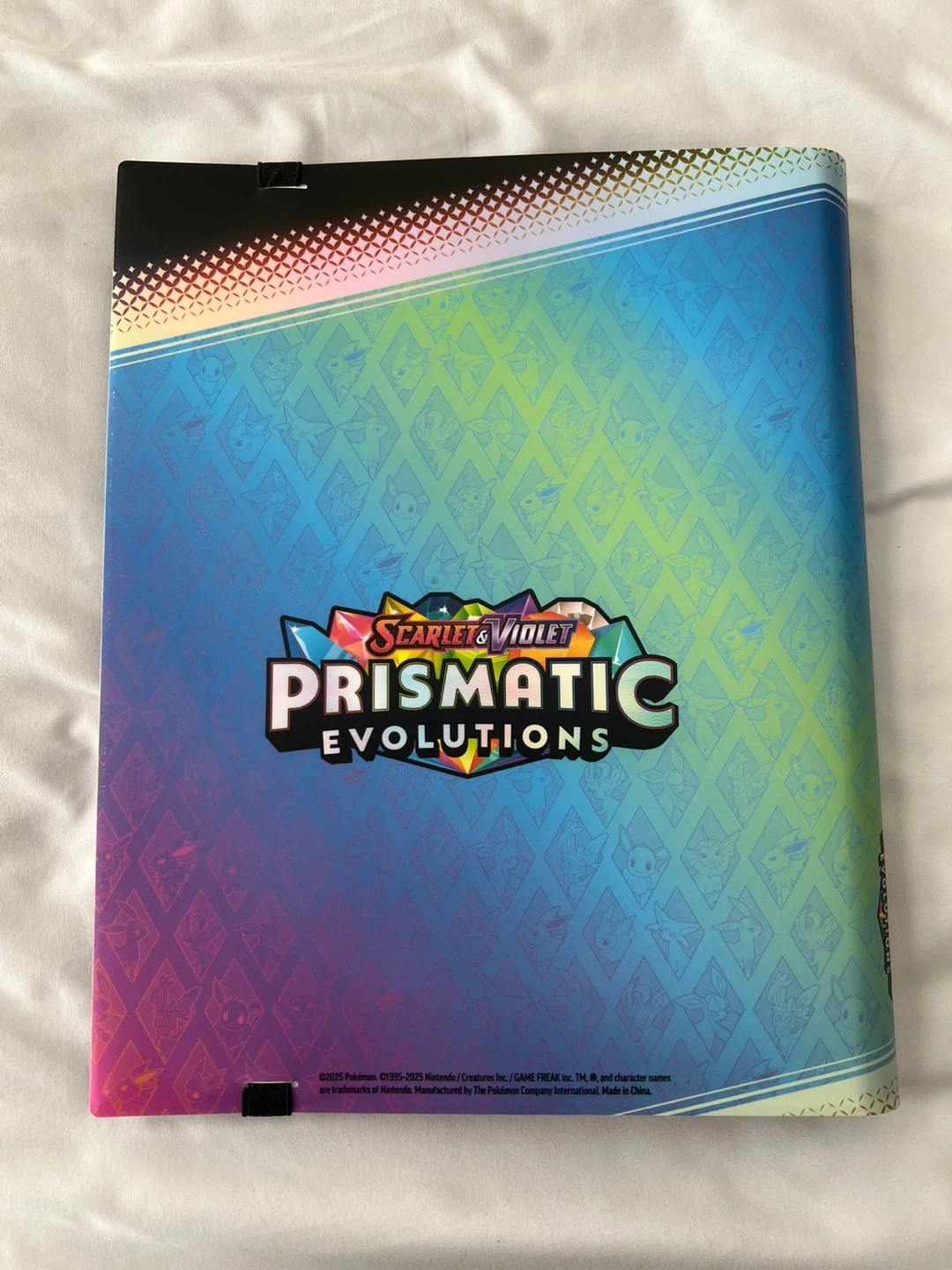 Selling a Pokémon Scarlet & Violet Prismatic Evolutions card binder! It's in great condition and ready to hold your favourite cards. Perfect for any Pokémon fan!