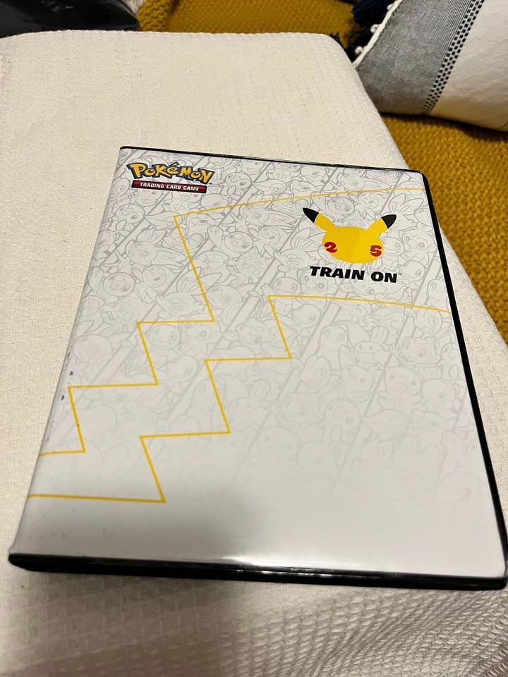 For sale is a pre-owned collection of Pokémon Trading Card Game cards, stored in an official 25th Anniversary Pokémon binder. This collection is perfect for a collector or a player looking to expand their deck. The binder contains a variety of cards. All cards are in a collector's binder and have been kept in great condition. This is a fantastic deal to get a large number of cards, with some great rare pulls, all at once. Selling the entire binder as a bundle. OBO, Pick up Pickering ON