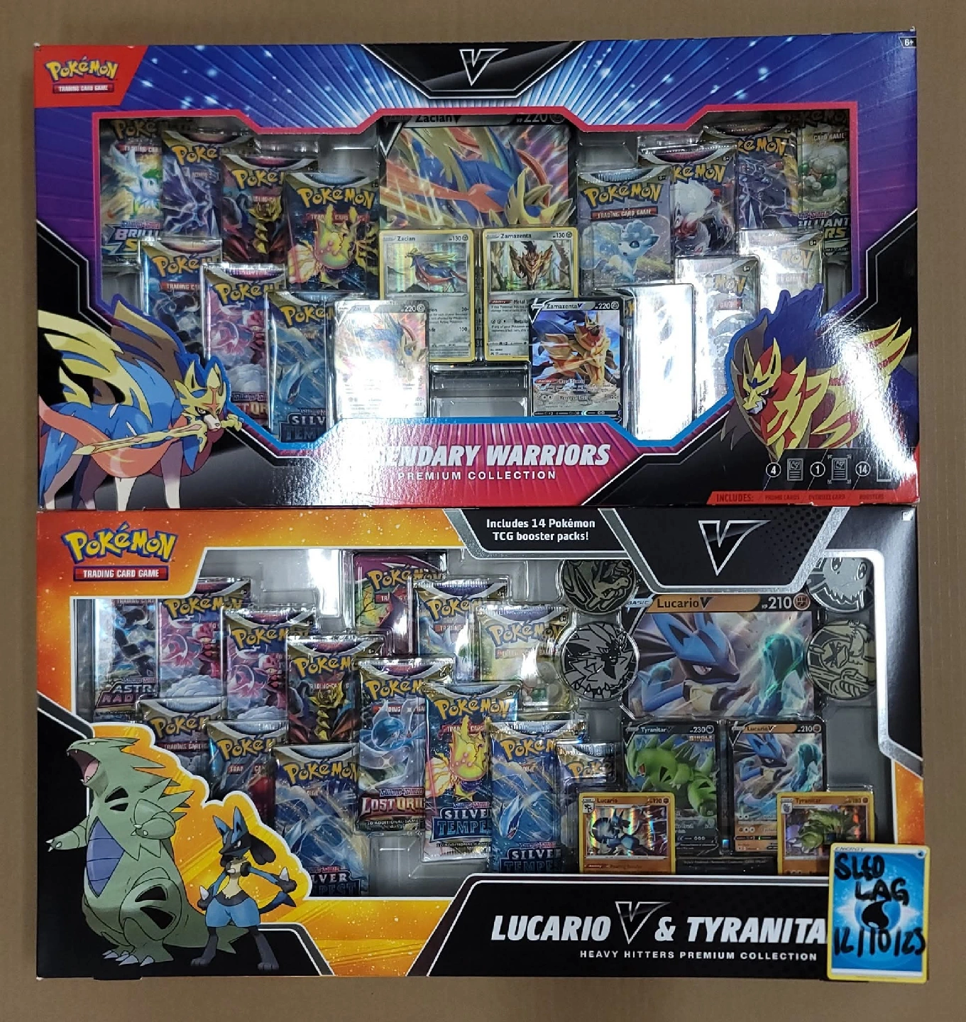 Selling a Pokémon Trading Card Game collection! This includes the Legendary Warriors Premium Collection and the Lucario V & Tyranitar Heavy Hitters Premium Collection. Both are packed with booster packs and promo cards for hours of fun! Legendary Warriors - $180 Heavy Hitters - $290