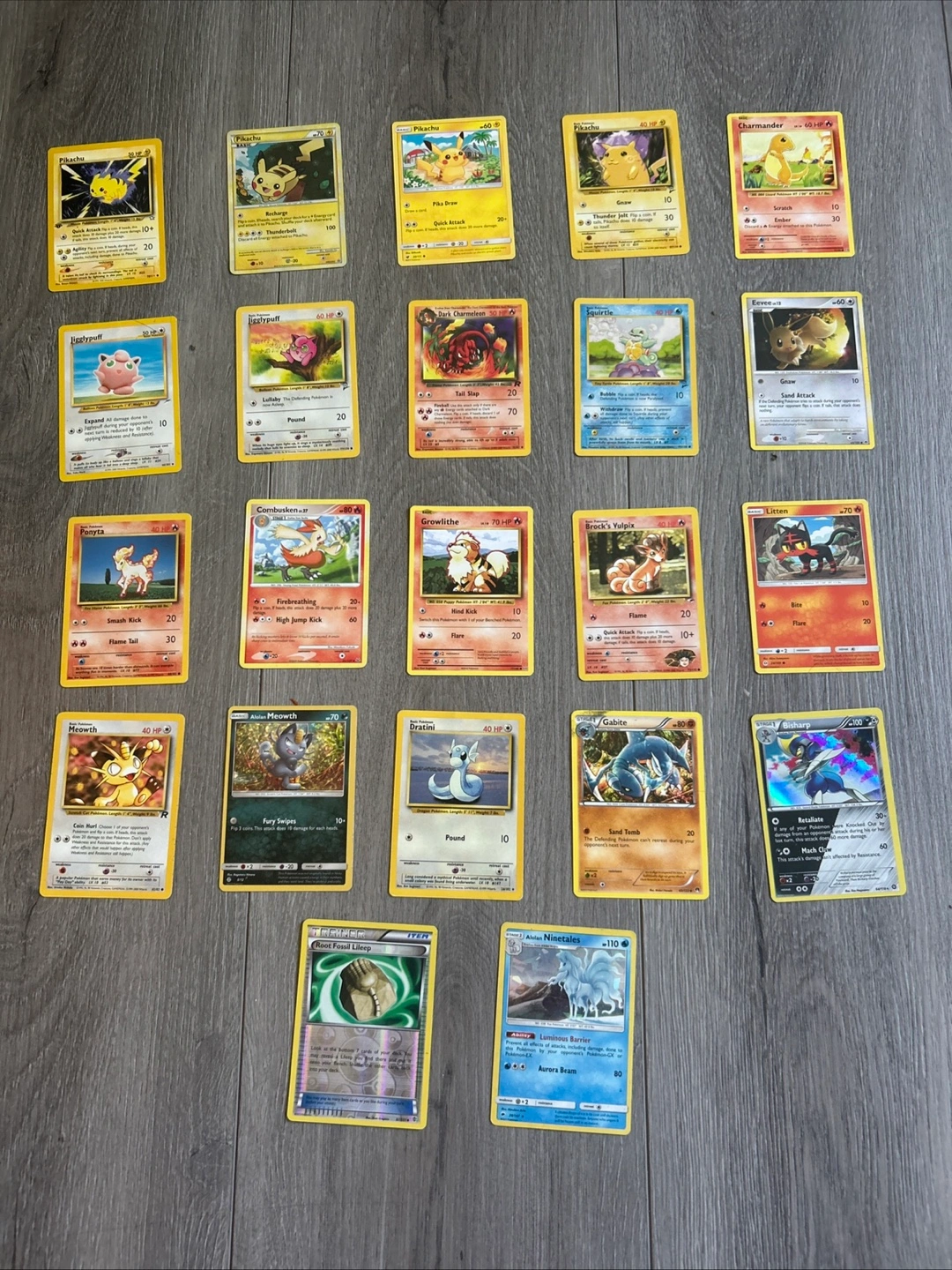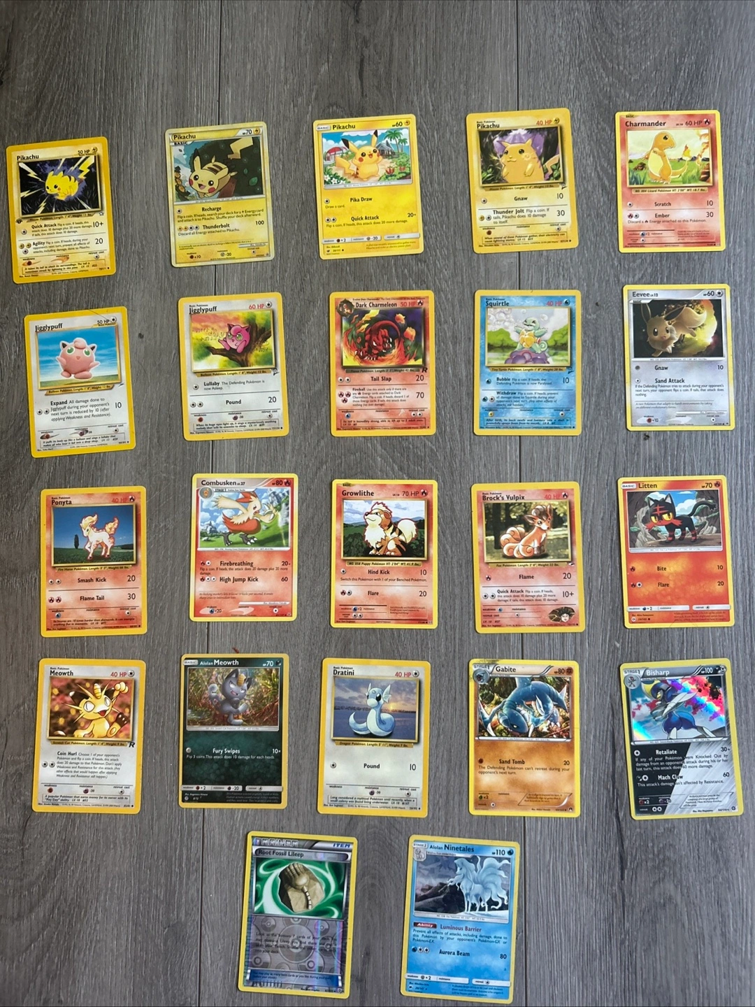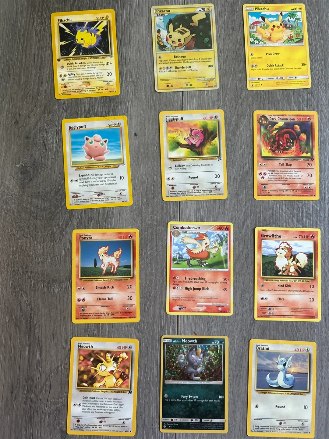 Selling a collection of assorted Pokémon trading cards! Includes a variety of Pokémon such as Pikachu, Charmander, Jigglypuff, and more. Great for collectors or anyone looking to expand their Pokémon card collection. In total they are $204CAD but willing to negotiate