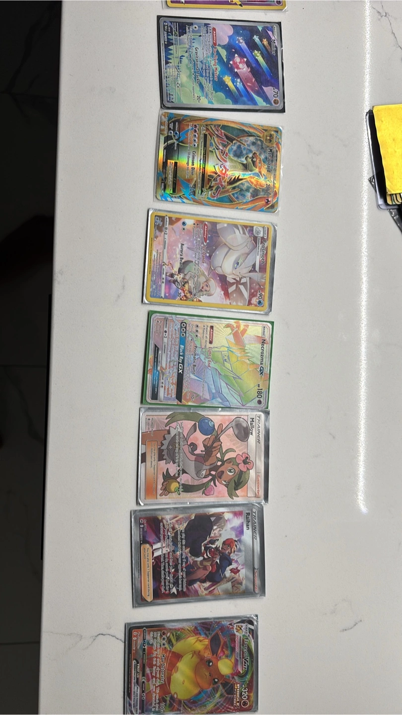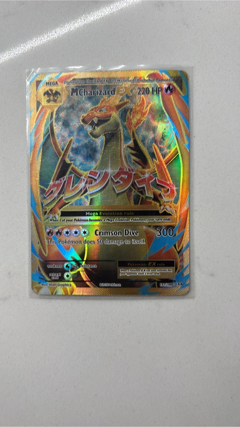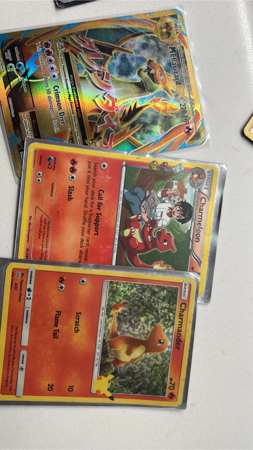 Collection of seven Pokemon cards. Includes a Mega Charizard X card and other various cards from different sets. Great for collectors or players.