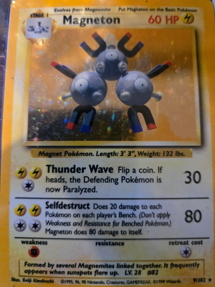 Selling a collection of vintage Pokemon cards! Includes Nidoking, Zapdos, Onix, Hitmonchan, and Magneton. all obo. free delivery Zapdos - $50 Onix - $30 Hitmonchan - $50 Nidoking - $100 Magneton - $60 Porygon - $50 Farfetch'd - $40 Schyther - $40 Clefairy - $40