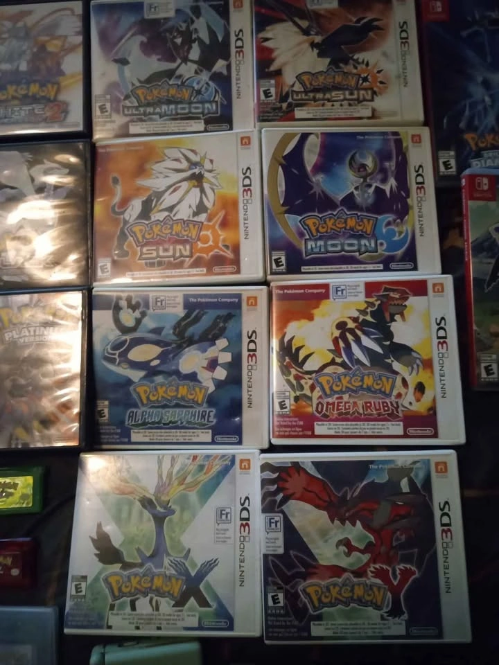 Entire Pokemon video game collection with all consoles to play them including extra 3DS and a 3DS XL Nintendo DSI Nintendo DS lite Nintendo switch and Nintendo SP with chargers and SD cards literally have every single game with case and booklets some missing manuals only missing five games to complete collection which are Pokemon Emerald Pokemon Sapphire Pokemon fire Red for game Boy advance Pokemon Red and Pokemon Silver for game Boy color currently possess every other game from the Pokemon saga prefer to sell as one collection not dividing up games all or nothing best offer takes it!!! Make me an offer!! Any pokemon collector's must have!!