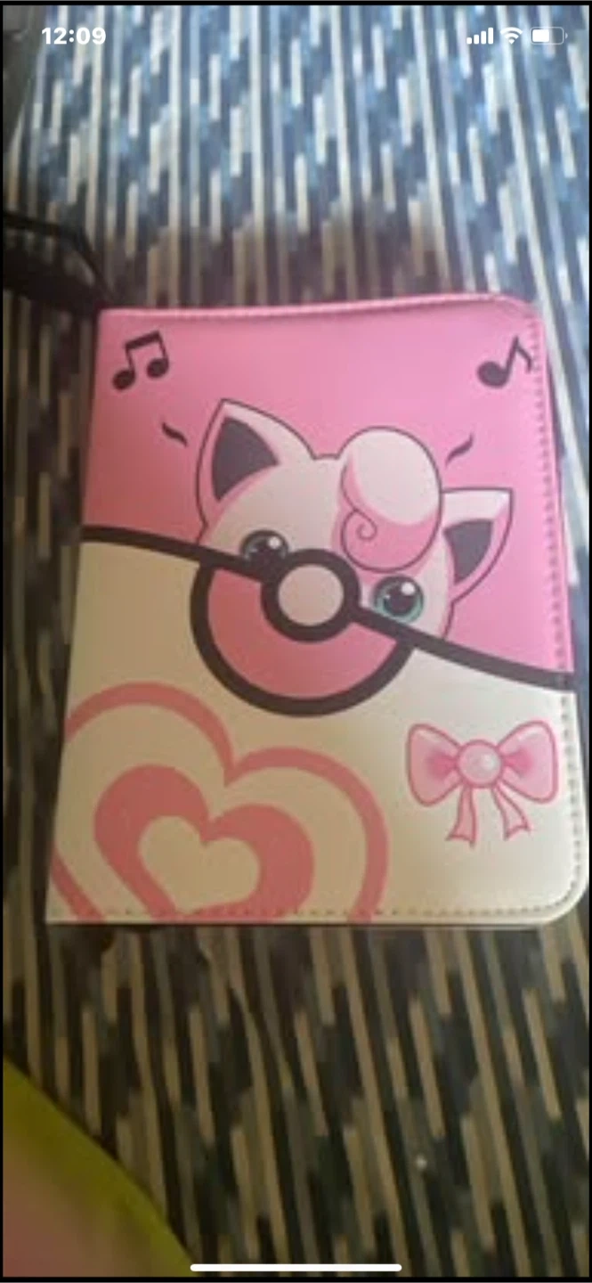 Selling a cute Pokemon card binder featuring Jigglypuff! It's pink and white with a musical theme. Perfect for keeping your cards safe and organized Holds 400 cards Pickup at kilping and steeles 4 in stock