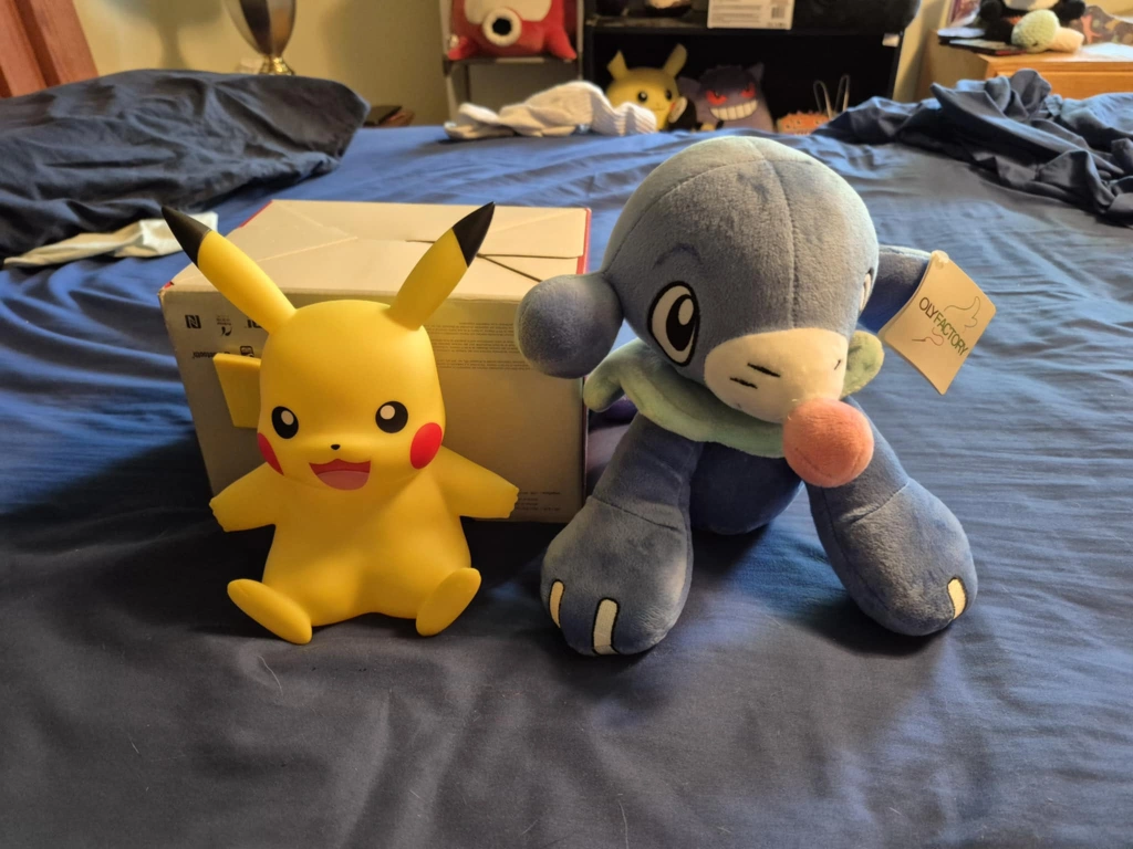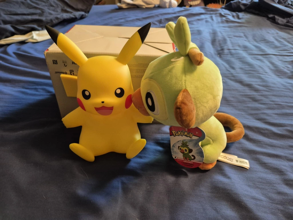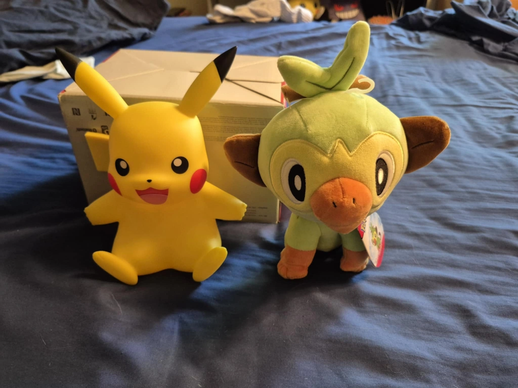 Selling a collection of Pokemon plushies! Included are Crobat, Koffing, Grookey, Pachirisu, Popplio, Sobble. They are in great condition and ready for a new home. Tags still on, Pikachu is there for scale comparison between plushies and not part of the sale. They have only been for decoration, so they are still in new condition. Willing to cut a deal if purchasing multiple. Smoke free, pet friendly home