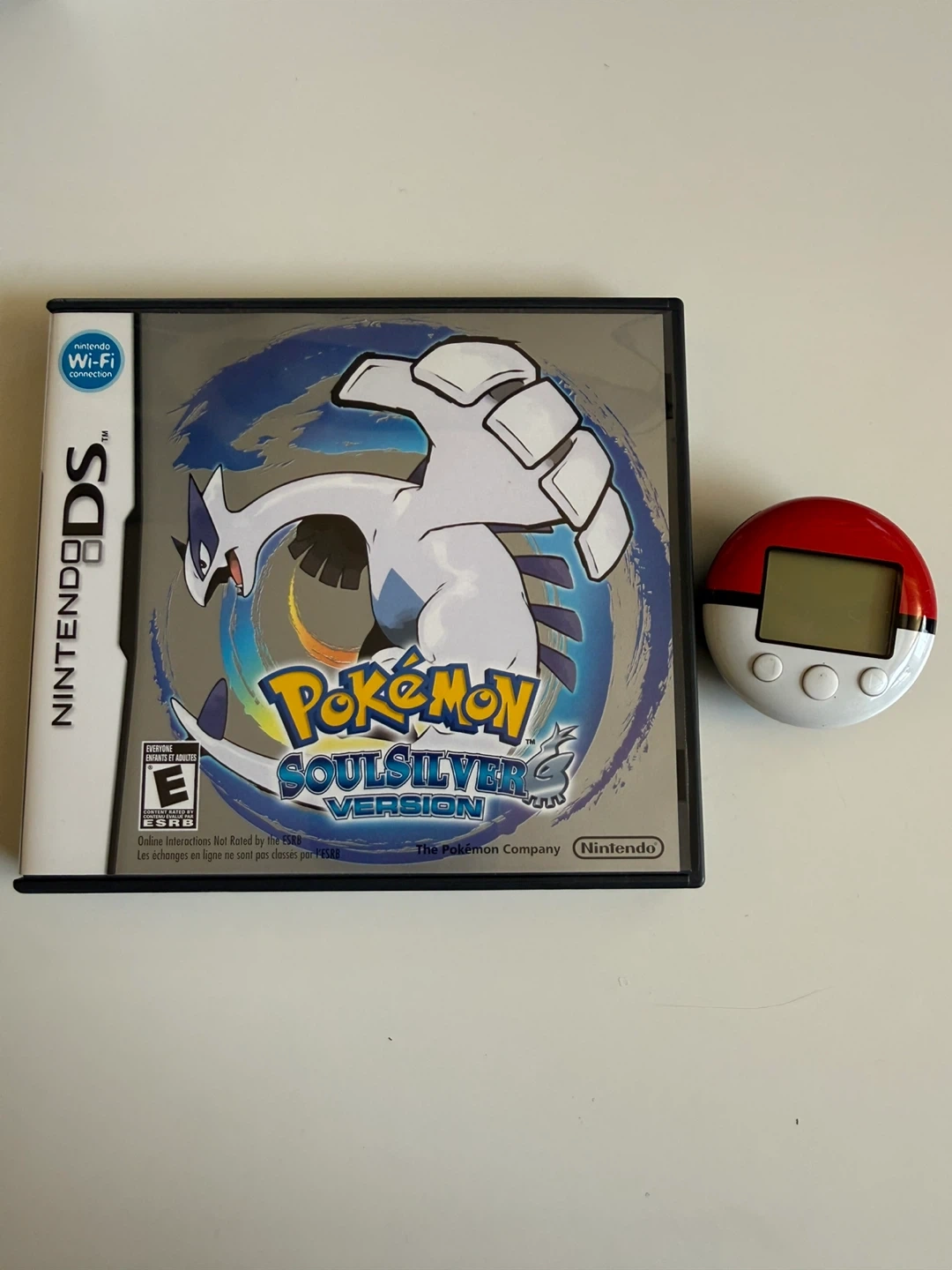 Selling a copy of Pokemon SoulSilver Version for the Nintendo DS! Comes complete with the game, case, manuals, and the Pokewalker accessory. A great addition to any Pokemon fan's collection! Minor sun bleaching on game case spine. Pokewalker has visible scratches on the front. Does not include outer game box, only what is pictured. Open to any offers.