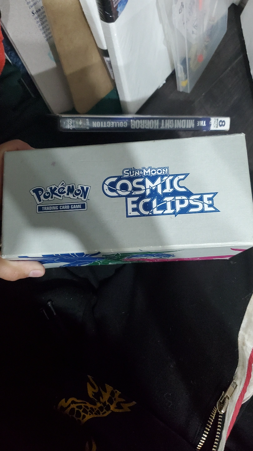 Open Pokemon Trading Card Game booster box. Sun & Moon Cosmic Eclipse set. Great addition to any collection. Random Cards