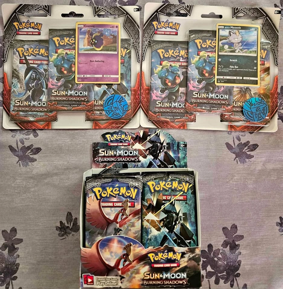 Booster Pack - $35 each 3 Pack Blister (Meowth) - $140 3 Pack Blister (Cosmog) $130 10 year old Sun & Moon set, low cost per pack compared to most older sets. Very highly sought after Charizard chase card. Pickup, Drop off or Meet-up available. Willing to trade for other sealed products or certain Singles/PSA Slabs.