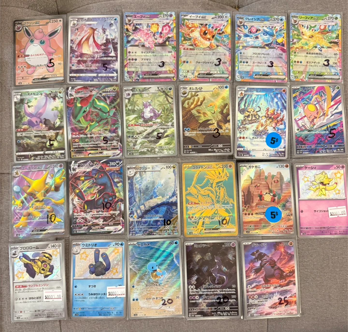 Selling a variety of Pokemon trading cards! Prices are marked on the cards themselves. Great for collectors or anyone looking to expand their collection