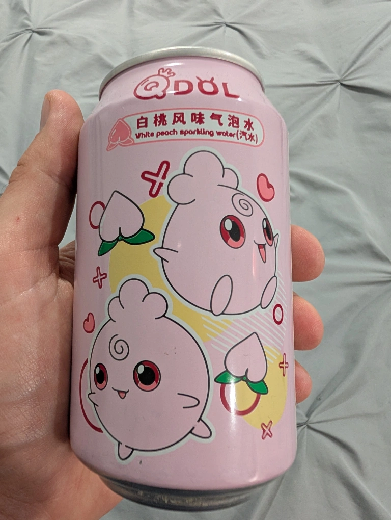 Selling a can of Pokemon White Peach Sparkling Water. It's a fun and refreshing drink! The can features cute Pokemon designs, making it a great collectible too