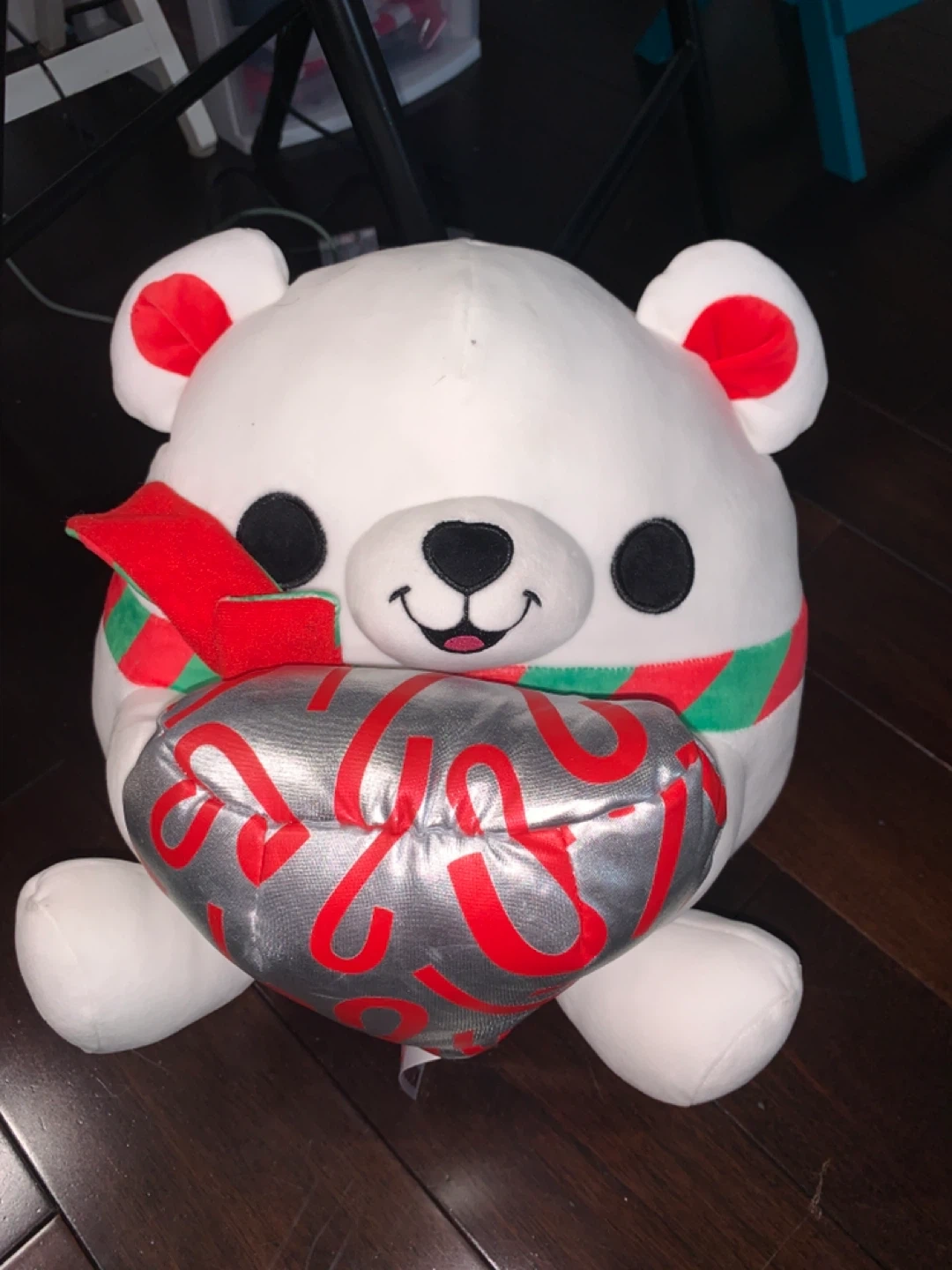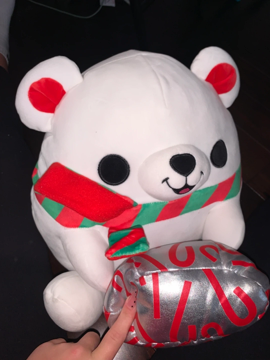Super cute polar bear plush toy! It's in great condition and ready for a new home. Perfect for cuddling or as a festive decoration