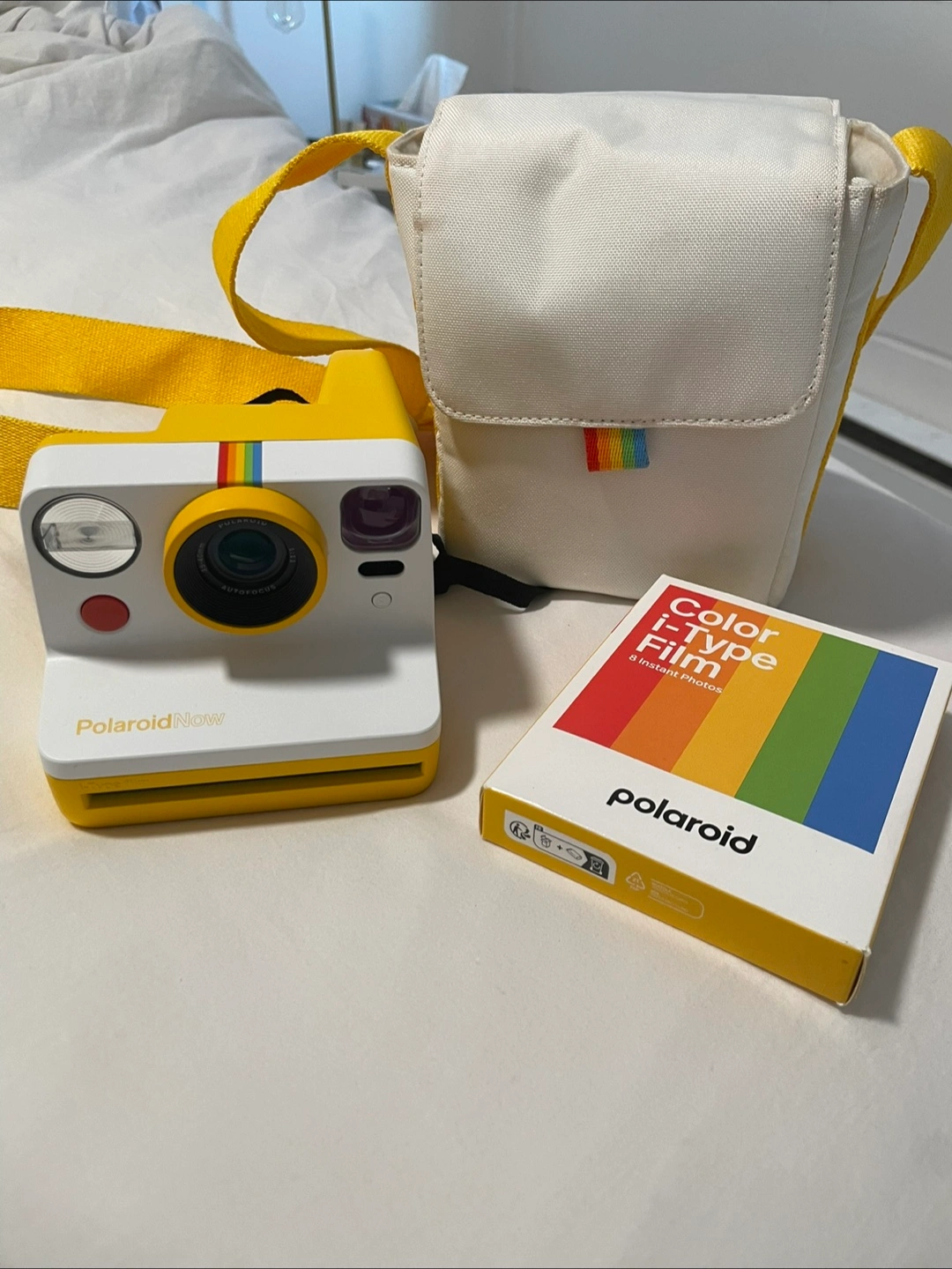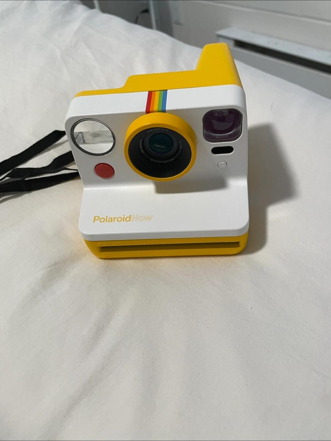 Selling a Polaroid Now instant camera in yellow! It's in great condition, only used a couple of times and comes with a carrying case and charging cord. +$20 for pack of Color i-Type film. Perfect for capturing fun memories!