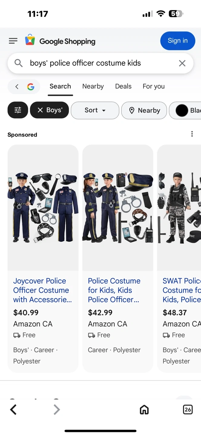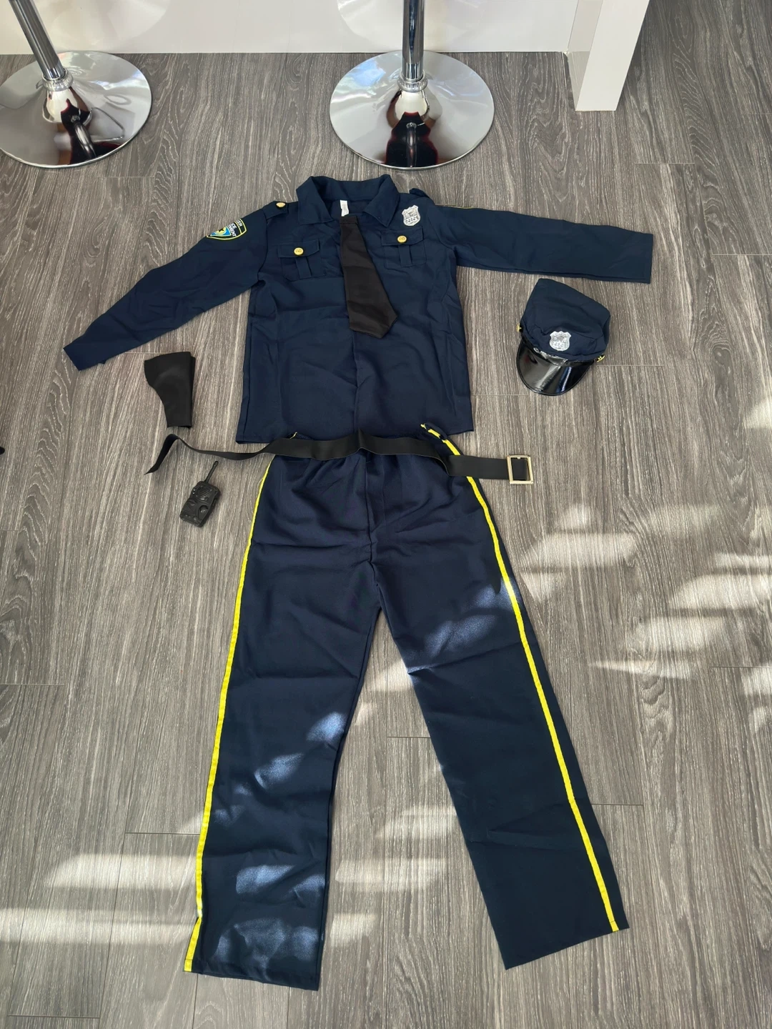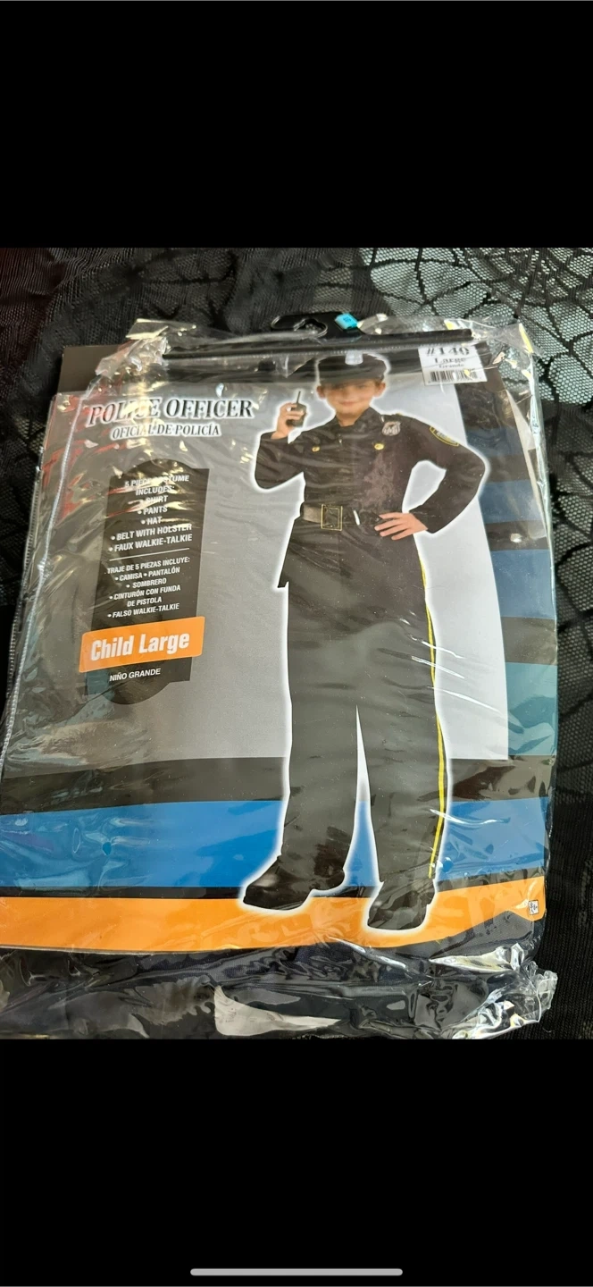Selling a child's police officer costume in size large for Kids. Includes: - Shirt - Pants - Hat - Belt with holster - Faux walkie-talkie Perfect for dress-up or Halloween!