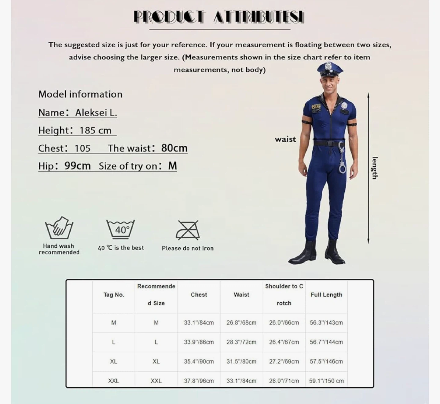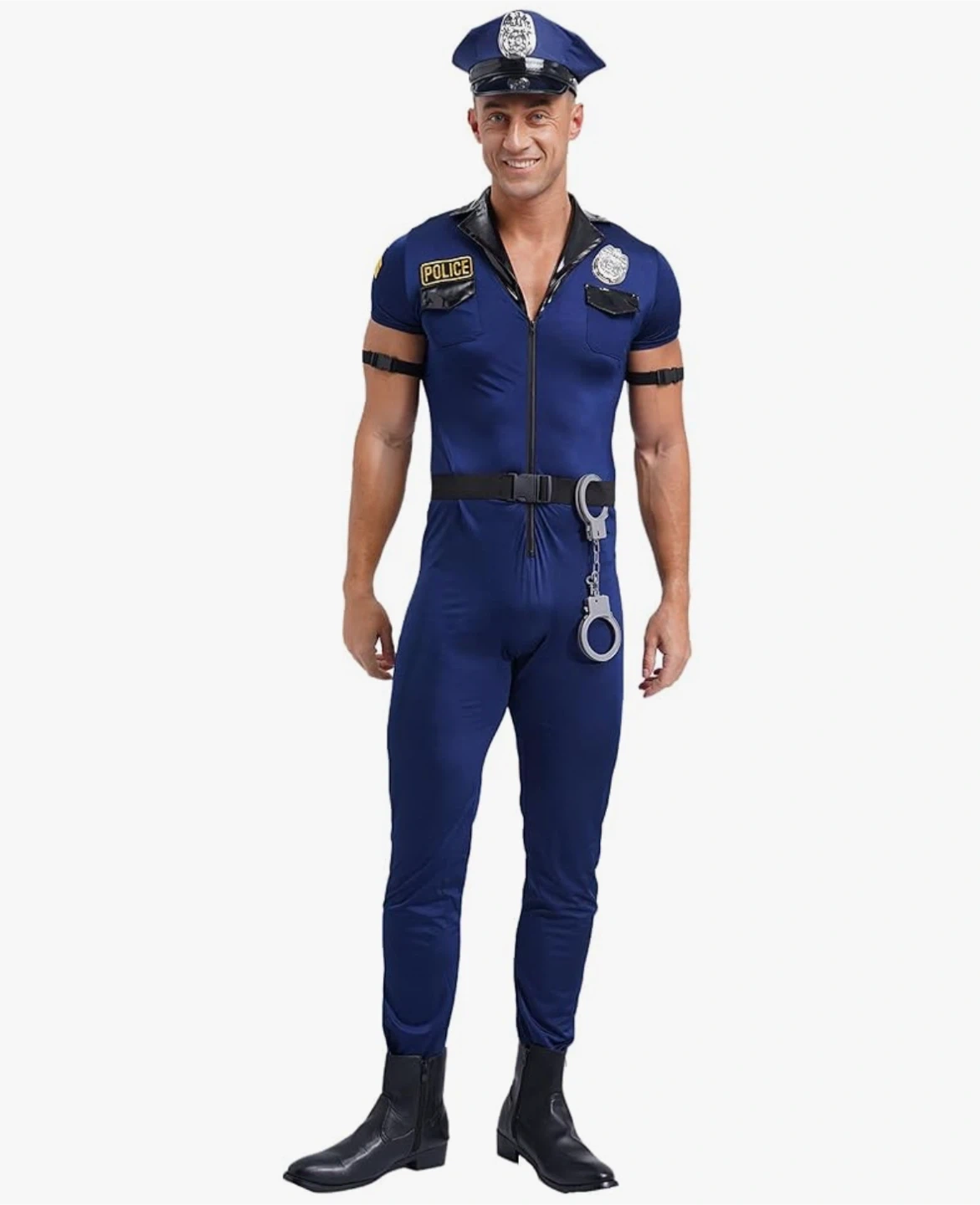 Selling a police officer costume in size Large The costume is unisex . Brand new Includes the jumpsuit and hat. Perfect for Halloween or costume parties!