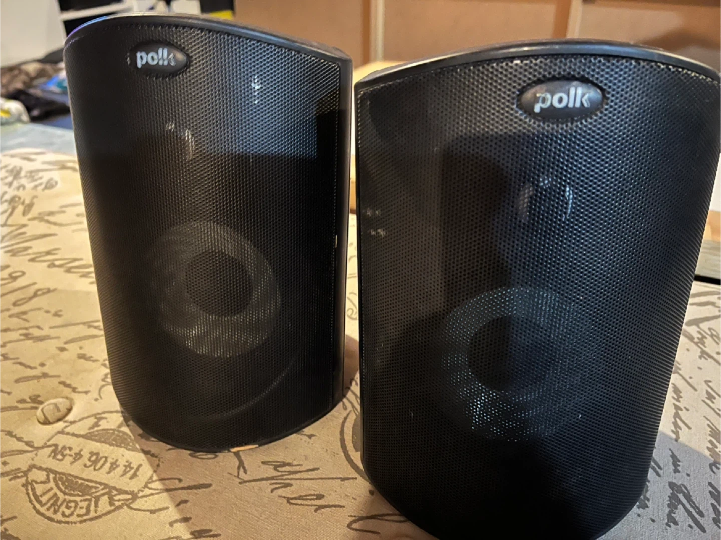 Selling a pair of Polk Audio Atrium 4 outdoor speakers in black. They're in great shape and ready to bring some sound to your space! Perfect for indoor or outdoor use.