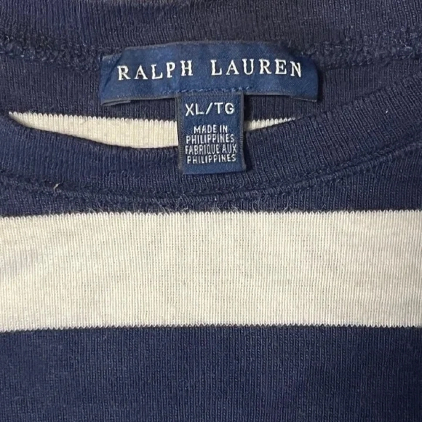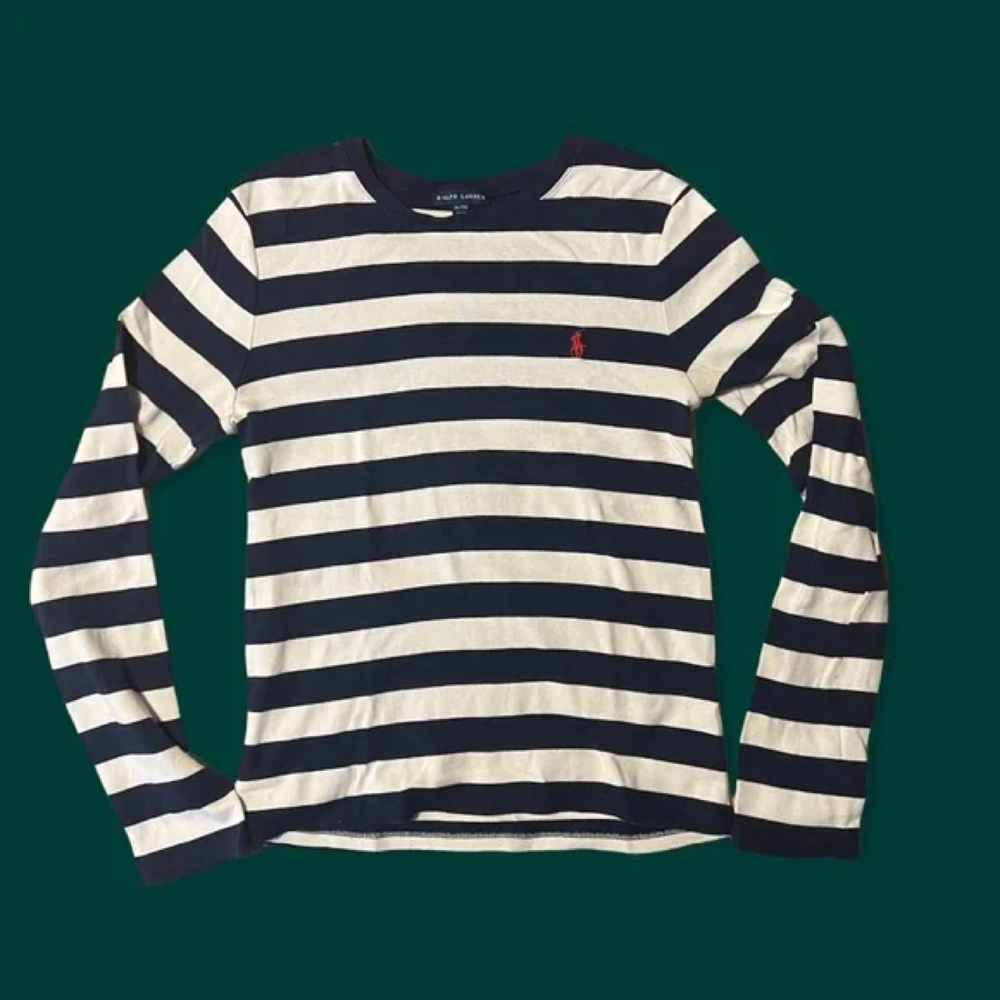 Pre-owned navy and cream striped long sleeve shirt. Features a classic Polo Ralph Lauren logo. Great for layering or wearing on its own. Ralph Lauren Striped Long Sleeve Shirt Used Condition (Very Good) Navy Blue/White Size W XL (Stretchy and fits more like Large) Thicker than most long sleeves. Very comfy and cozy. Flat Measurements: Length 24โ Pit to Bottom 14โ Pit to Pit 17โ Arm Length 25" Cash Rossland & Salem Area Pickup (Ajisen Ramen 334 Rossland Rd E) Smoke Free Home ๐ก Sanitized and Washed Thoroughly ๐งบ Bundle to Save More ๐ Offers and Questions are Welcome ๐