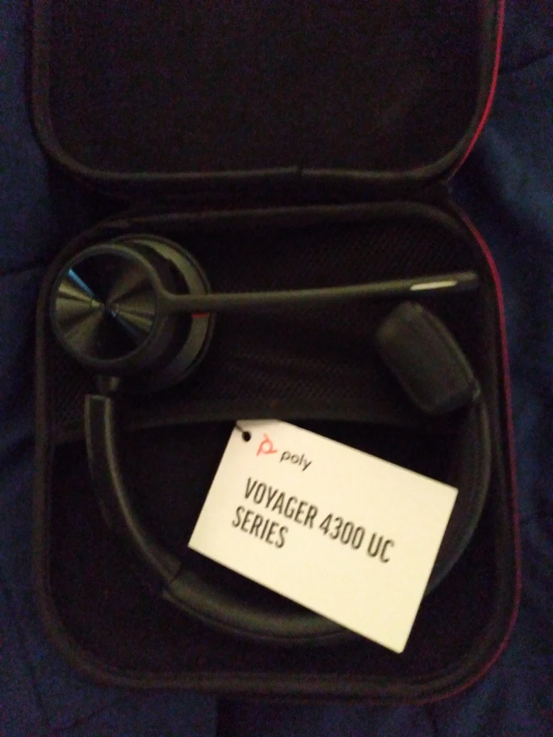 Selling a Poly Voyager 4300 UC Series headset! It's in great condition and comes with its case. Perfect for work or study