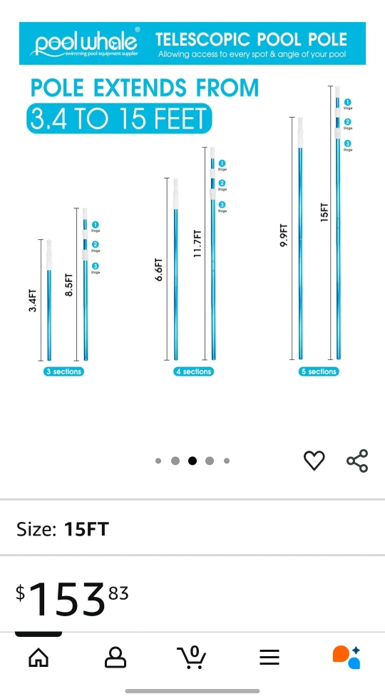 Premium telescopic pool pole, extends from 3.4 ft to 15 ft. Made of strong anodized aluminum, lightweight and durable. Perfect for skimmer nets, brushes, and vacuum heads. π Pickup in Eastwood. Delivery negotiable.