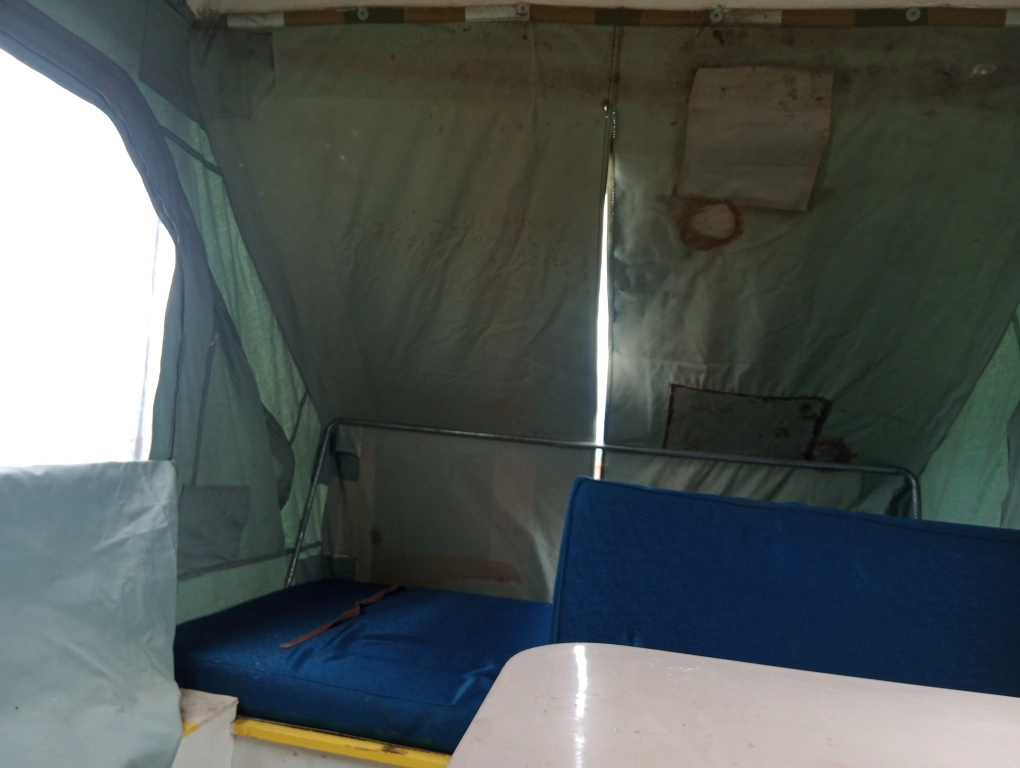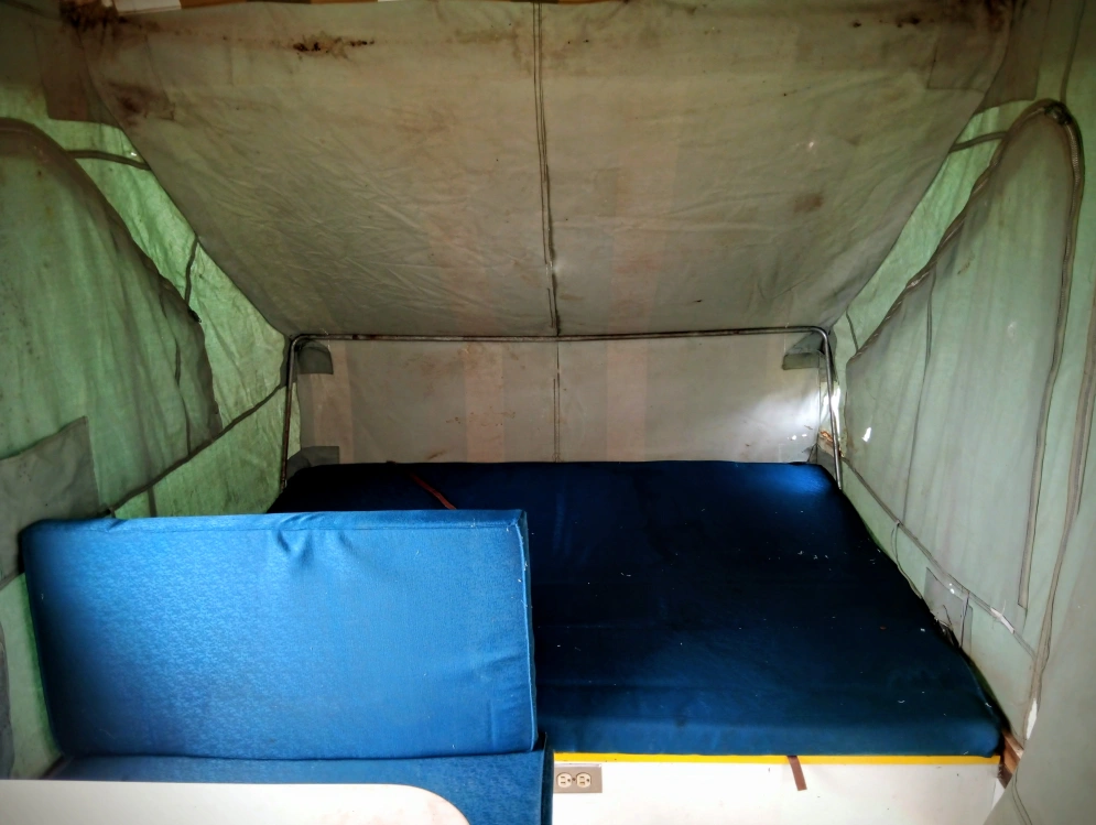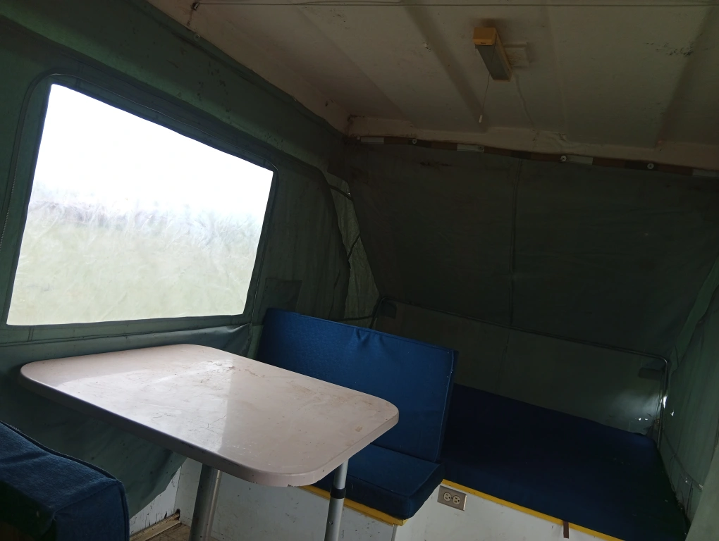 Vintage pop-up tent trailer — definitely in “fixer-upper” condition, but with loads of potential. Fabric and frame could use some TLC, but the bones are solid. All the cushions inside are in mint condition! Plus, TONS of storage areas! Perfect project for someone handy who wants a budget-friendly camper, or convert it into a cozy ice shack for winter fishing. Lightweight, easy to tow, and ready for a second life. Selling as-is.