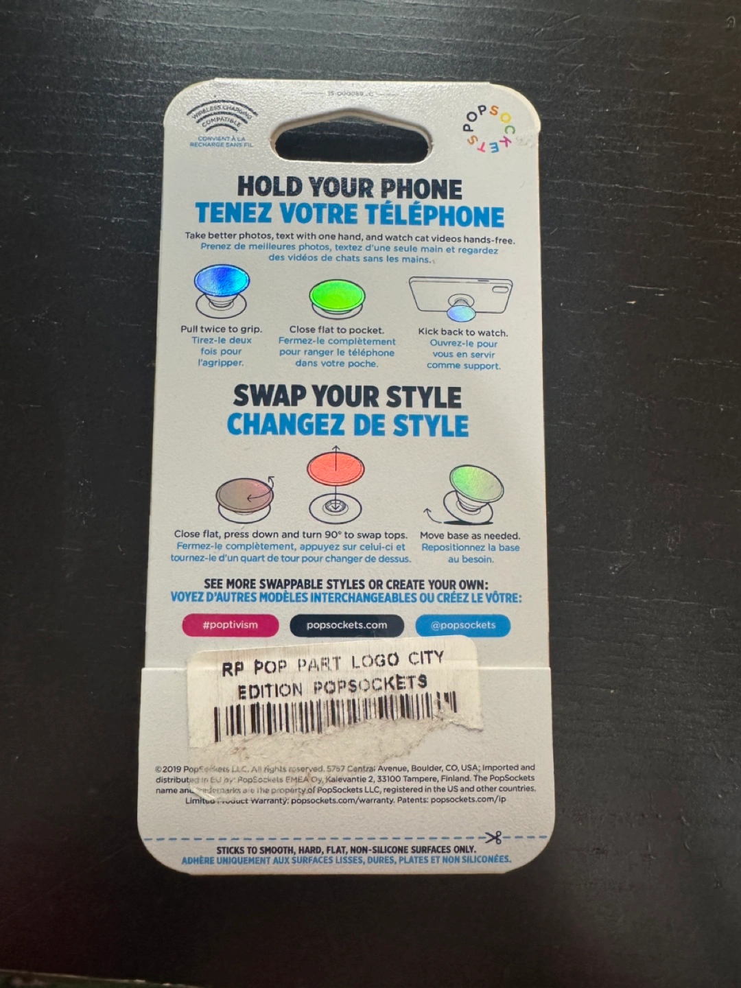 Raptors Pop Part Logo City Edition PopSockets (BRAND NEW) New Swappable PopGrips allow you to swap out your PopTops, allow for wireless charging, and have all the same perks as our Original PopGrips. Holds your phone to take better photos, text with one hand, and watch videos hands-free. • New PopGrip and PopTop designs allow for easy swapability • Now wireless charging compatible through easy removal of the PopTop • Offers a secure grip so you can text with one hand, snap better photos, and watch cat videos hands-free • Functions as a convenient stand so you can watch videos on the fly • Repositionable and sticks to most devices and cases (but may not stick to silicone or waterproof cases) • Allows for hands-free use with the PopMounts • Compatible with all mounts sold today Smoke-free, Pest-free, and Pet free home. Cash and asap pickup only, please. Stockyards (Keele/St. Clair) Area Retail Price: $14.99 + tax = $16.94 CAD Selling Price: $5.50