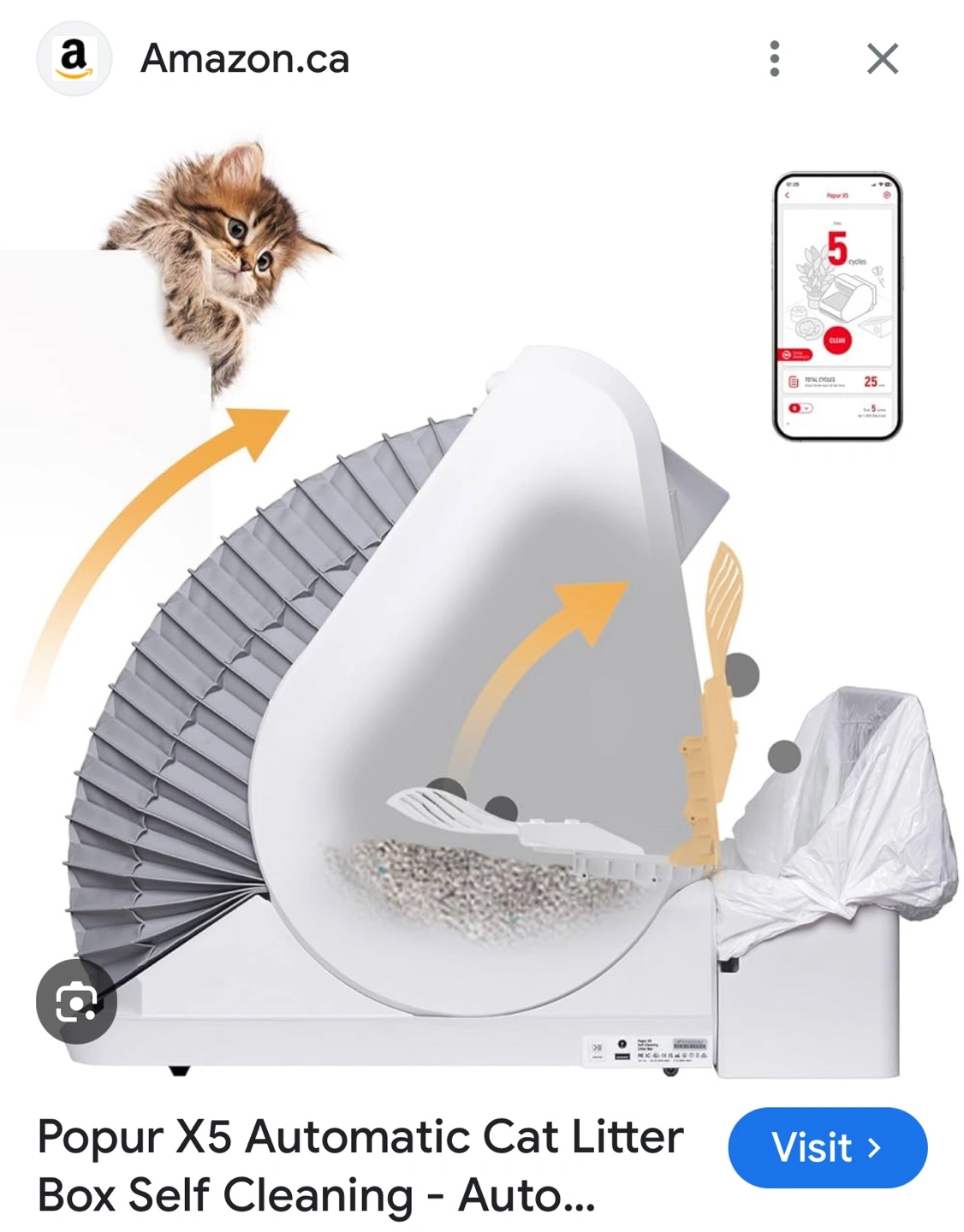 Selling a Popur self-cleaning cat litter box. It appears to be in good condition and comes with the pictured components. Great for keeping your home tidy!