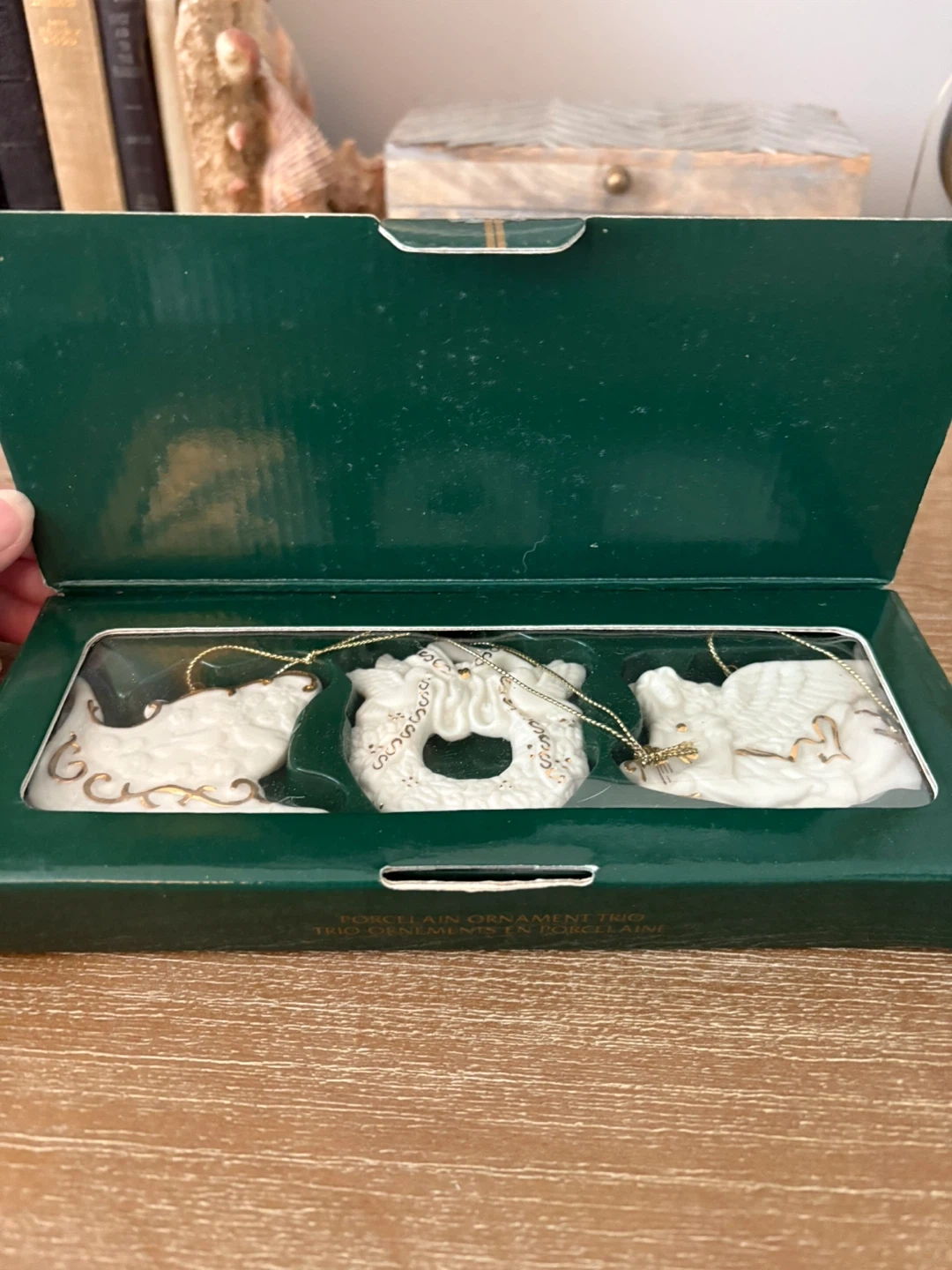 Selling a vintage Avon porcelain ornament trio still in its original box! The set includes three beautiful porcelain with gold accent ornaments, . They're in pristine condition, ready to be displayed and enjoyed Niagara Falls north end location. Cash only