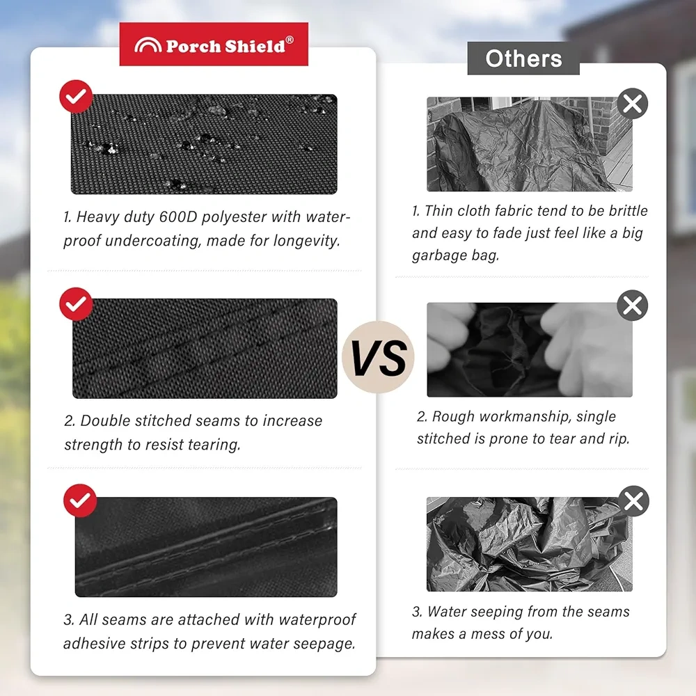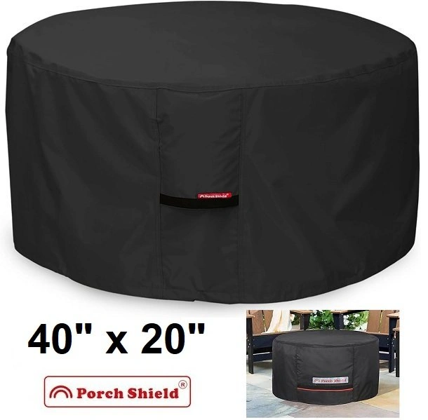 Keep your outdoor furniture protected with this Porch Shield round patio fire pit cover! It measures 40" x 20" and is made from heavy-duty 600D polyester with a waterproof undercoating for longevity. The cover also features double-stitched seams to increase strength and resist tearing, with waterproof adhesive strips attached to all seams to prevent water seepage. There is a small tear in the cover, as shown in the photos, but otherwise it's in good condition!