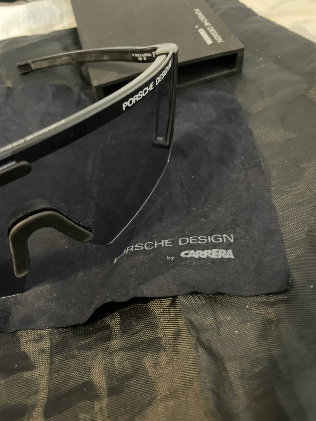NEW Vintage Porsche Sunglasses Design by Carrera. Includes, Special “Carrera” Case, & a soft black (Carrera) Cloth EXCELLENT CONDITION. Discover these brand new vintage Porsche Design sunglasses, a sleek and stylish accessory that combines iconic design with modern flair. These sunglasses feature a sophisticated black frame and dark lenses, perfect for adding a touch of elegance to any look. The frames are marked with 'PORSCHE DESIGN by CARRERA'. They come complete with the original Porsche Design case and cleaning cloth.