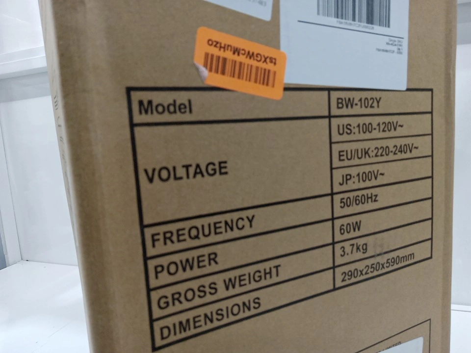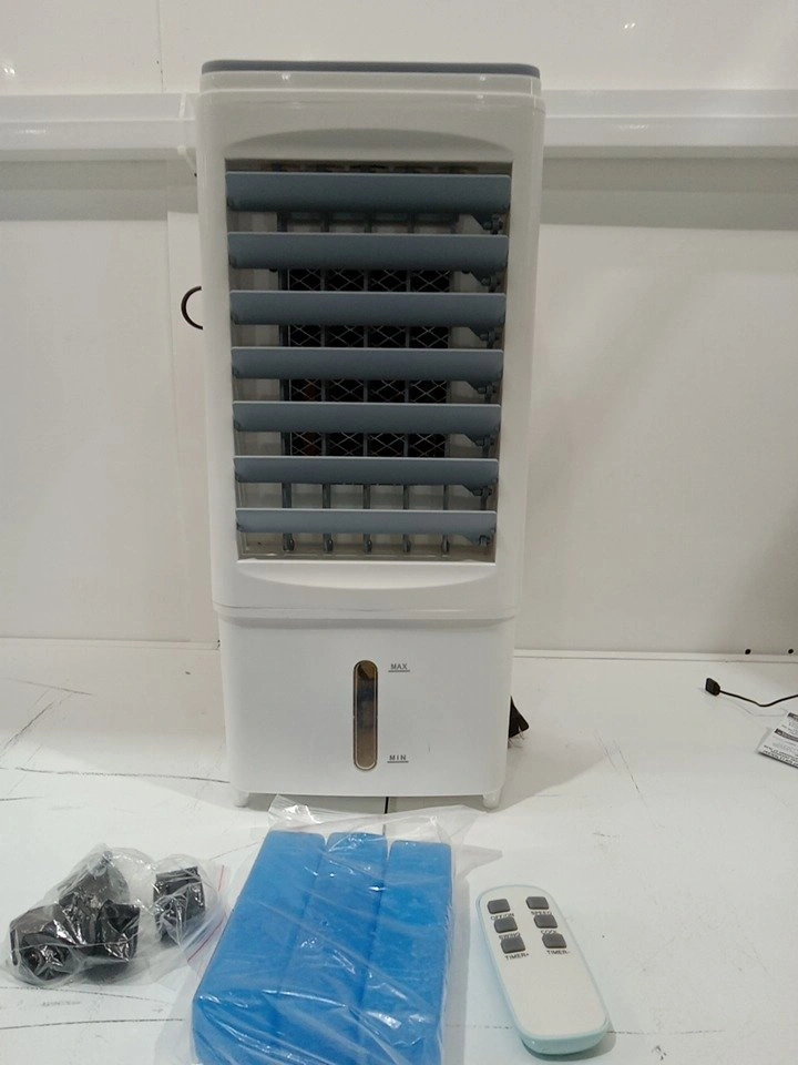 Keep cool with this portable 3-speed evaporative air cooler, model BW-102Y. This unit is in like new condition, still in its original packaging, and comes complete with a remote control and ice packs for enhanced cooling. It features adjustable speeds and a swing function to distribute cool air evenly throughout the room. Here are some additional specifications: * Model: BW-102Y * Voltage: 100-120V~ * Frequency: 50/60Hz * Power: 60W Beat the heat and stay refreshed all summer long! If you're reading this, it's still available and waiting to find a new home. Don't miss out!