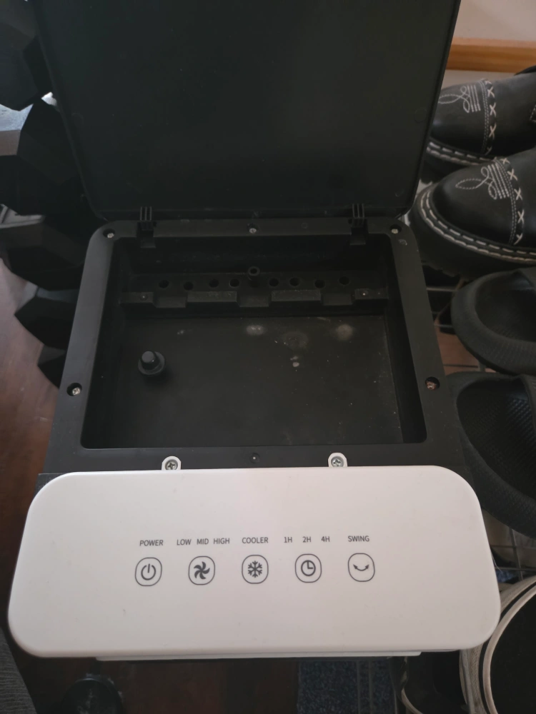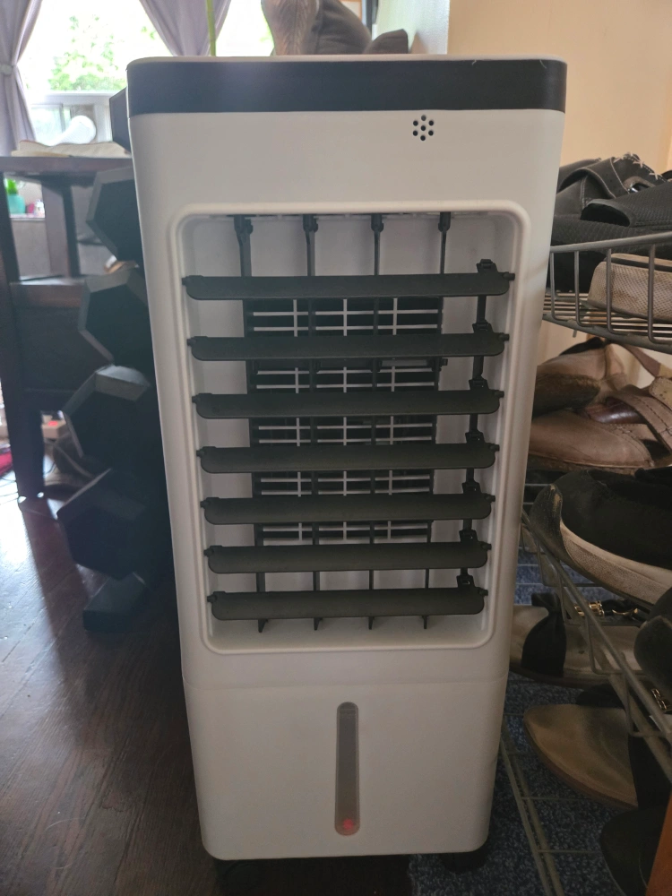 Selling a portable air cooler! It has settings for low, medium, and high, as well as a cooler function. You can also set a timer for 1, 2, or 4 hours, and there's a swing function too
