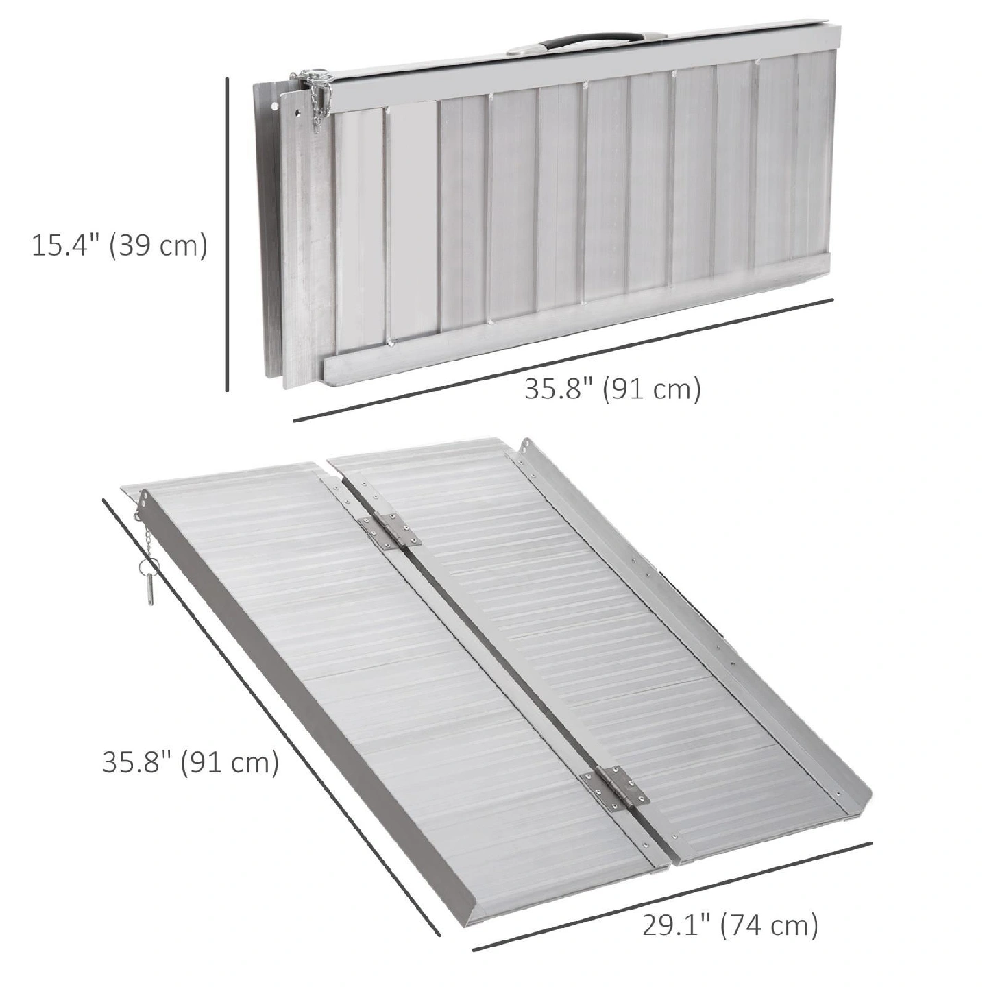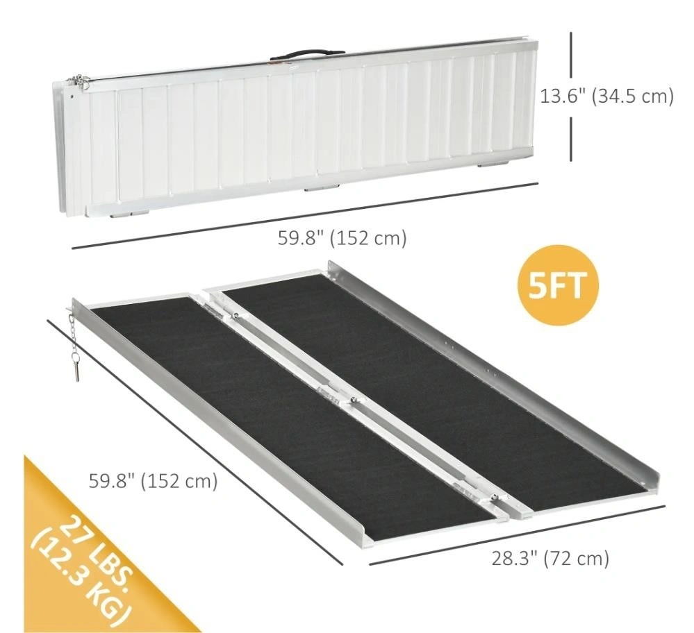 Selling NEW aluminum wheelchair ramp. Cheapest on the market!! 2ft - $75 3ft - $120 4ft - $145 5ft - $200 6ft - $240 8ft - $300 Designed for easy access over steps and doorways. It features a textured surface for enhanced grip and safety. The ramp is lightweight and portable, making it convenient for travel and storage. Its folding design allows for easy setup and takedown. Suitable for scooters and wheelchairs, it provides a stable transition between surfaces. Ideal for home use or outdoor settings.