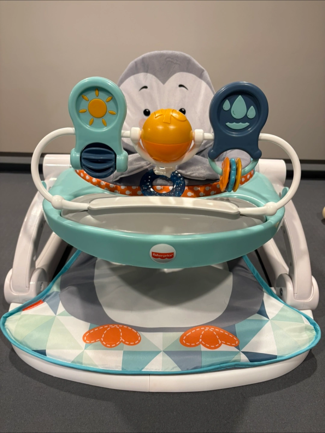 Soft, portable infant seat that provides a comfortable spot for baby to sit up and play! Helps support unsteady sitters in an upright position with a wide, sturdy base 2 linkable toys keep baby entertained - clacker and BPA-free teether Folds flat for space-saving storage or travel seating Seat pad is removable and machine washable