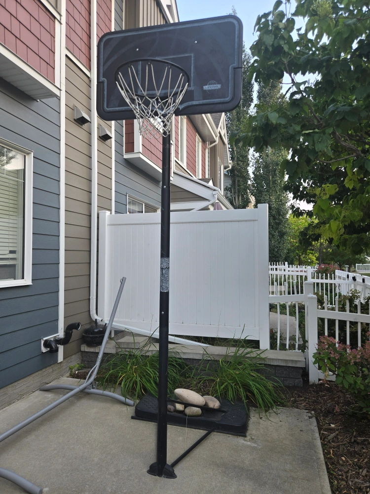 Perfect for kids or casual play. Used but still in good condition. Sturdy base (currently weighted with rocks) Height-adjustable pole, rim and net d Priced to sell quickly – Pickup near Rabbit Hill Rd, Edmonton. If you pay, I can also deliver it (30$~50$)