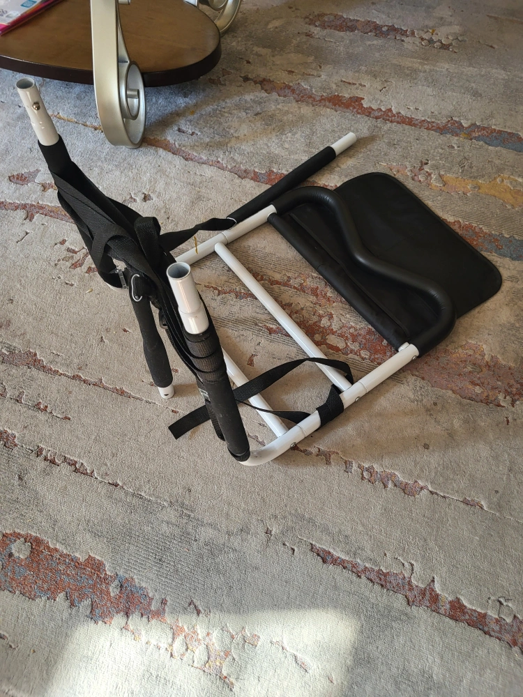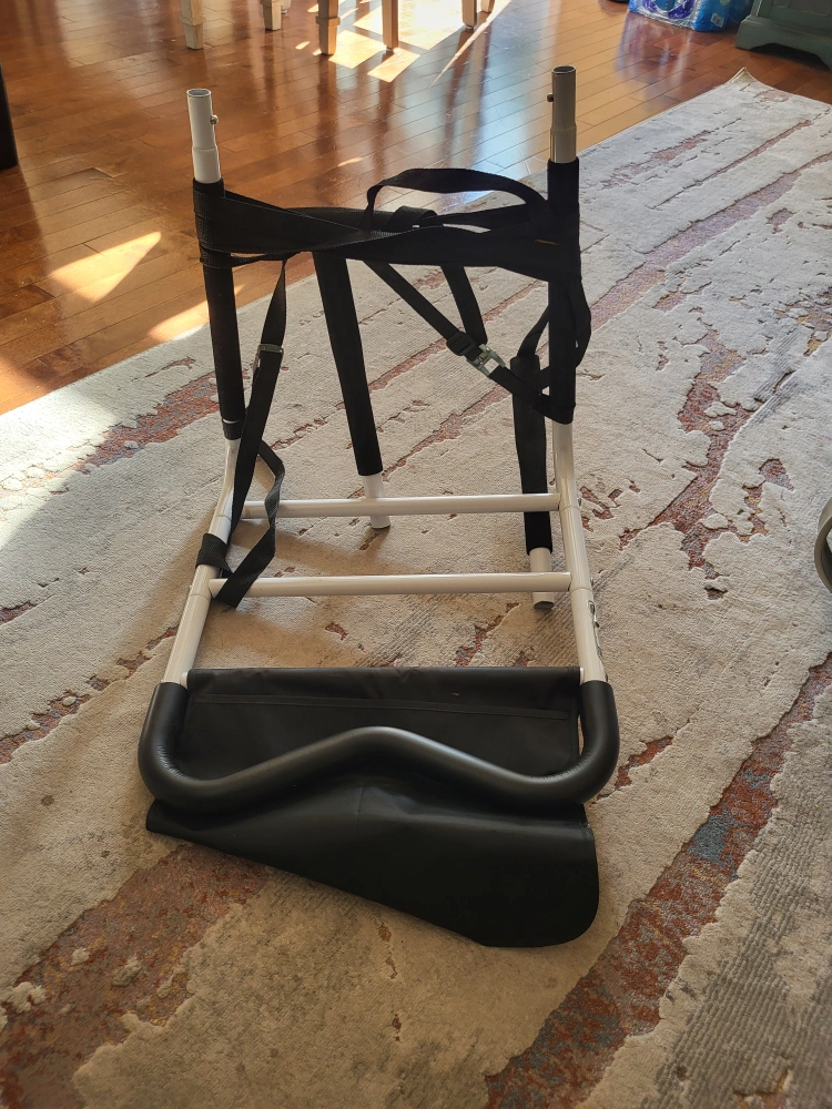 This portable bed ladder assist is designed to help individuals sit up in bed. It features a sturdy frame and a comfortable hand grip for added support. Great for anyone needing a little extra help!