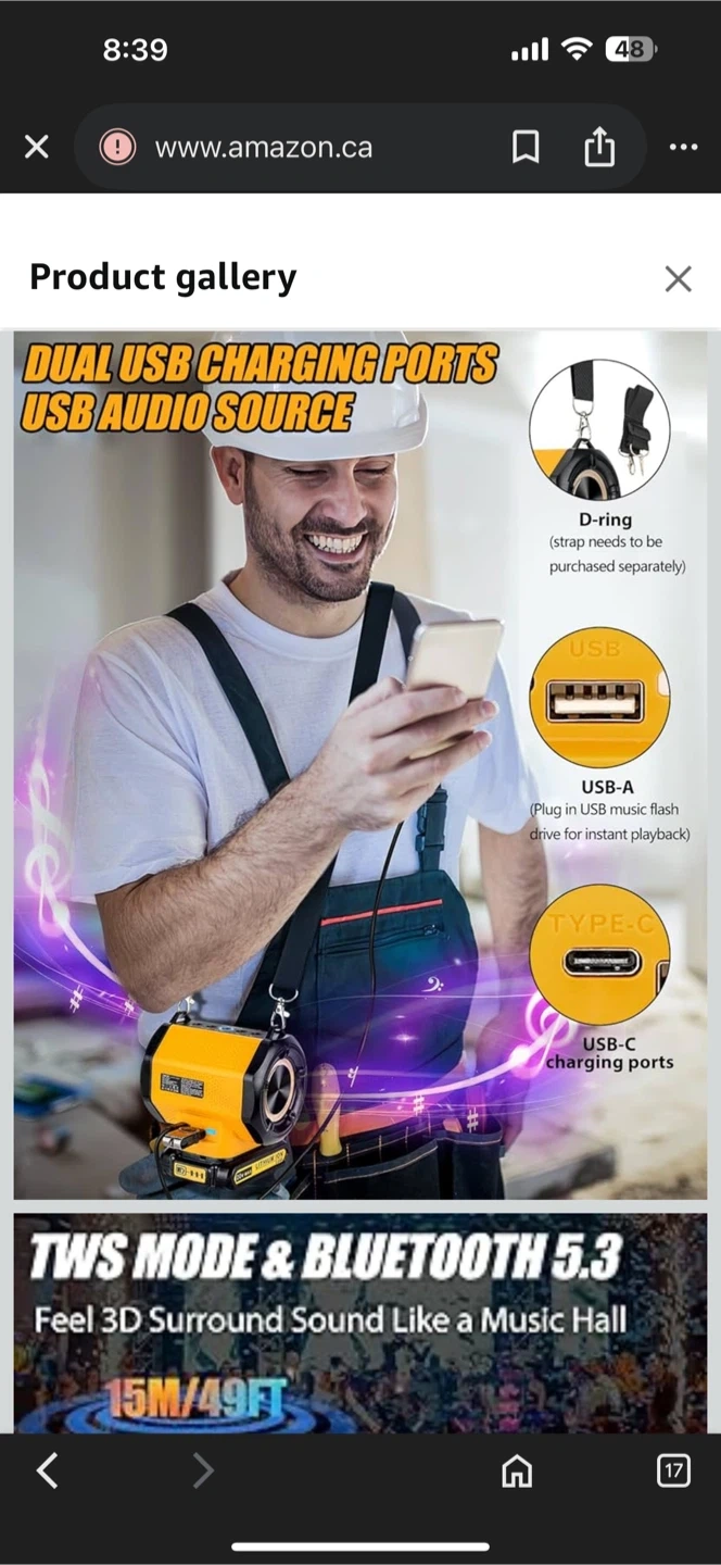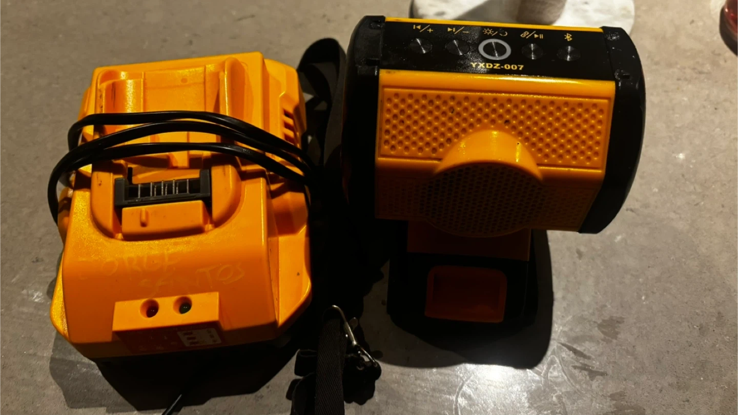 Small Speaker for Jobsites, Home and Party Used at a construction site, good condition includes battery/charger cordless