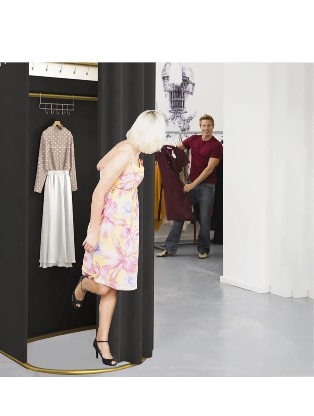 This is a portable fitting room with a shading curtain. It's perfect for creating a private space in a store or at home. The dimensions are 200cm x 100cm x 95cm. The curtain is made of linen cloth, which provides noise reduction, privacy protection, and blocks light. It's also machine washable