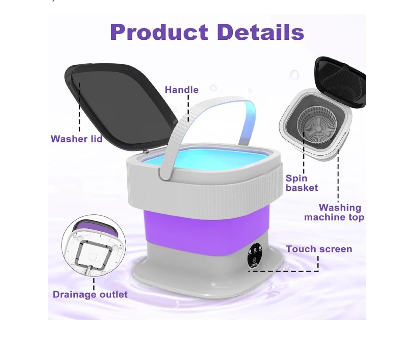 This mini washing machine is perfect for small loads and travel. It features a spin basket and touch screen controls. It's lightweight and portable. The box is included
